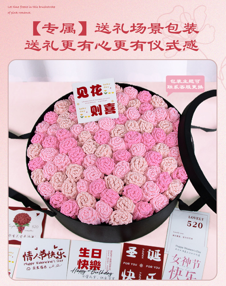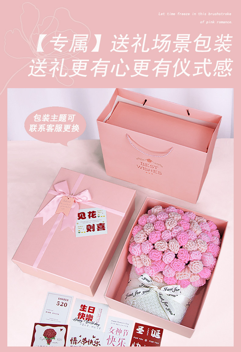 【粉玫瑰】【大号-成品99朵-直径160cm】粉色精美礼盒礼袋