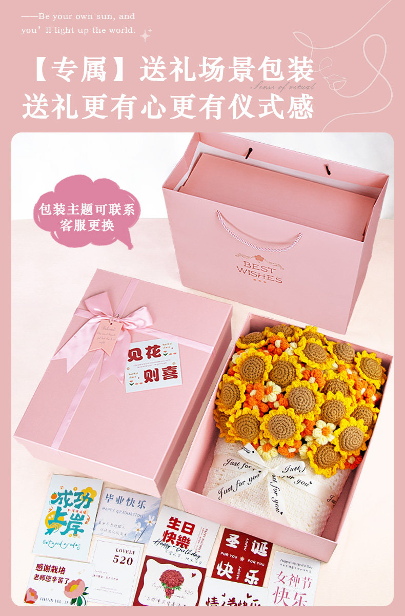 【向日葵】【大号-成品99朵-直径160cm】粉色精美礼盒礼袋