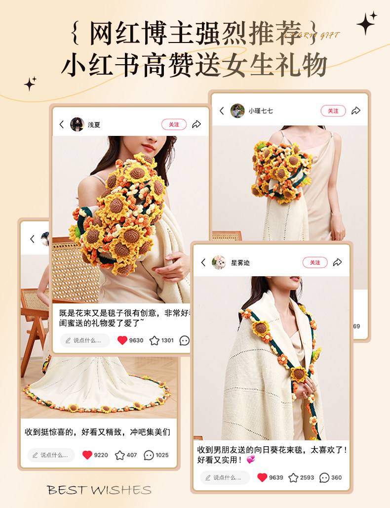 生日礼物女生新年送闺蜜实用高级感女友退休女士玫瑰花束毯情人节