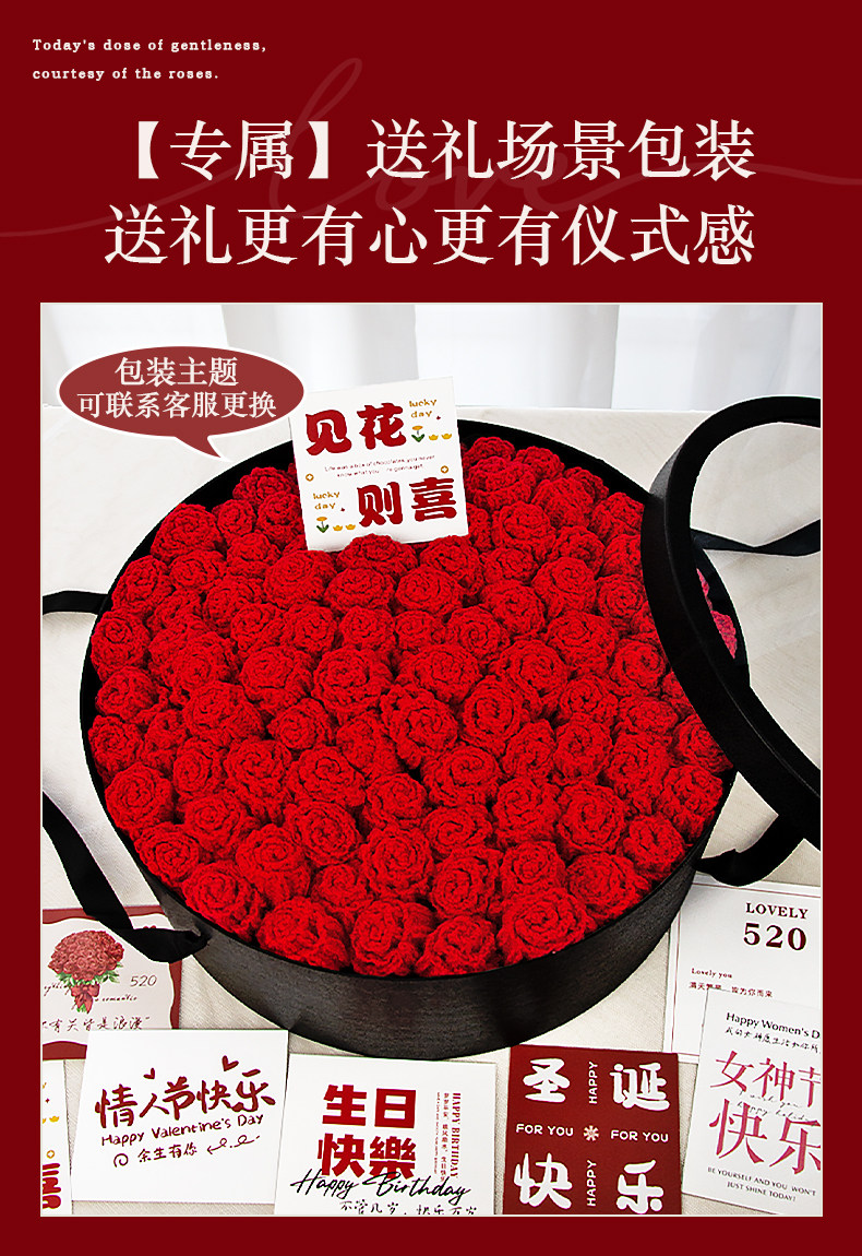 【红玫瑰】【大号-成品99朵-直径160cm】黑色精美透明礼盒