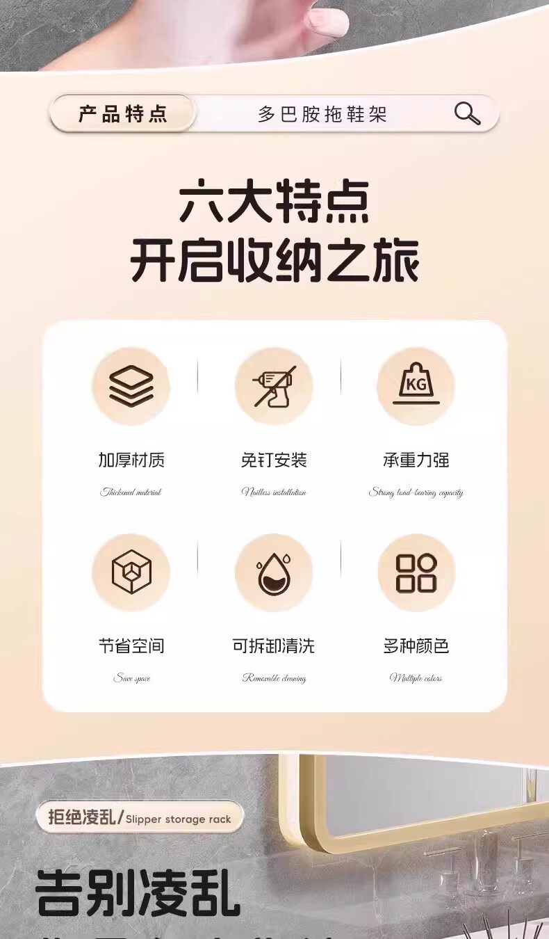 浴室拖鞋架厕所墙上拖鞋挂架沥水挂钩免打孔卫生间挂鞋子收纳神器