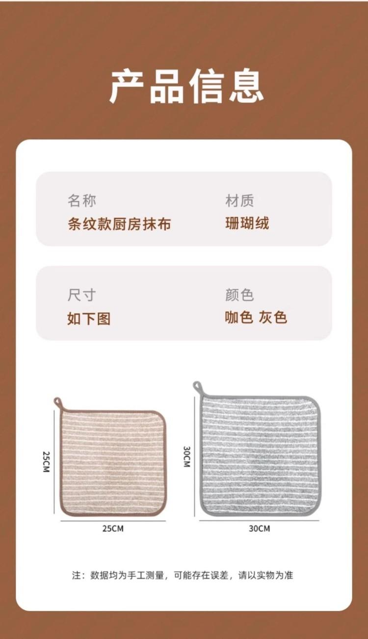 加厚条纹棕色【中号6条装】 (25*25cm)