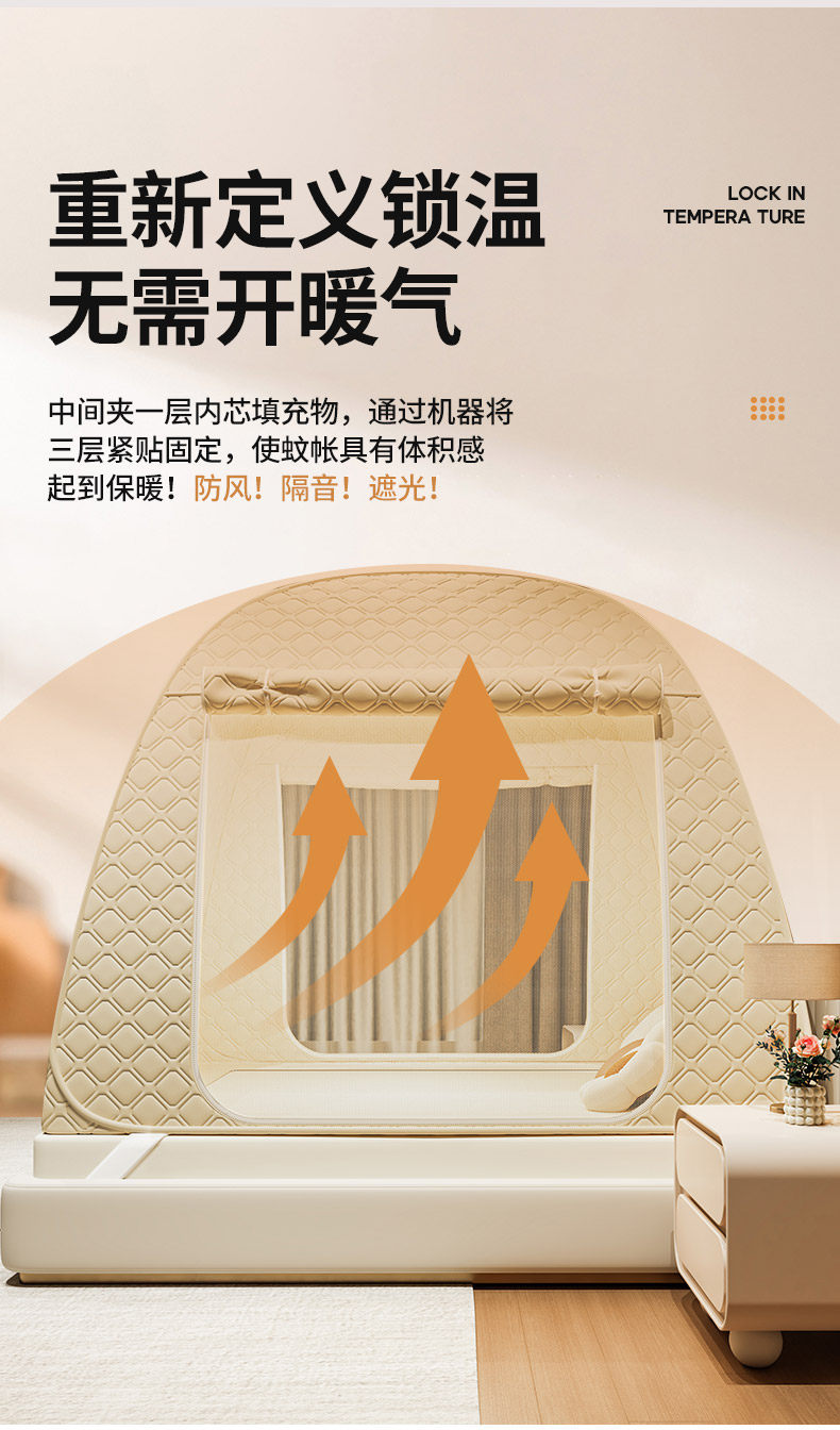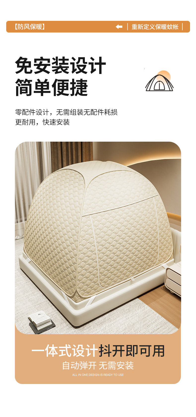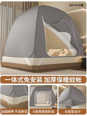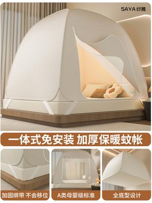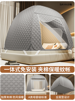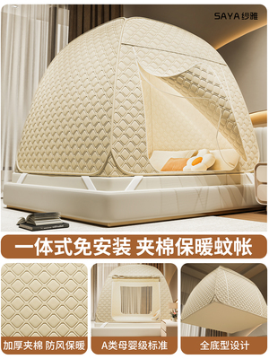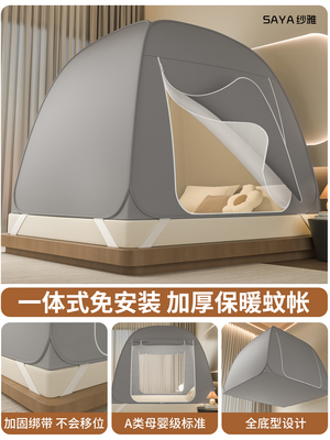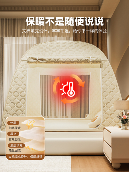 一体式免安装保暖蚊帐家用保暖帐篷室内床上夹棉帘冬季防风防寒罩