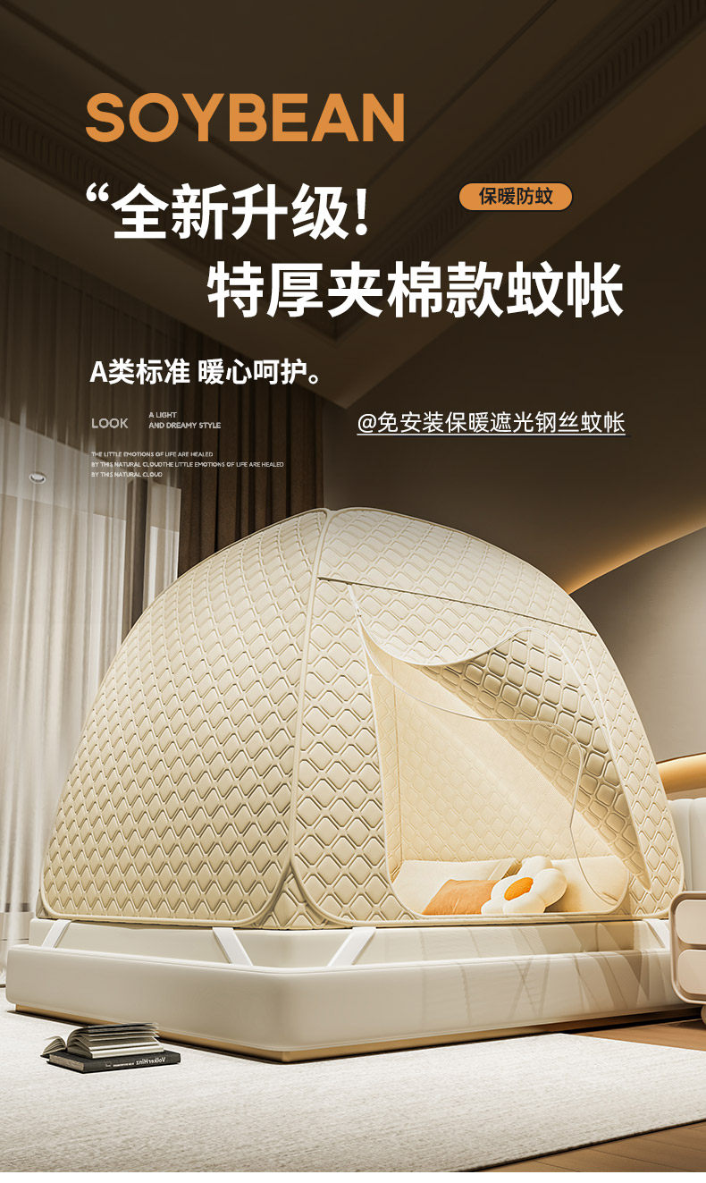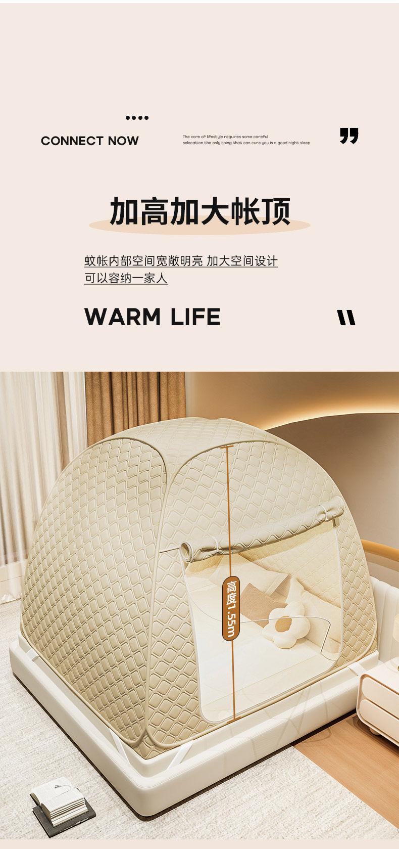 浅米咖夹棉特厚全底【一体式免安装蚊帐】