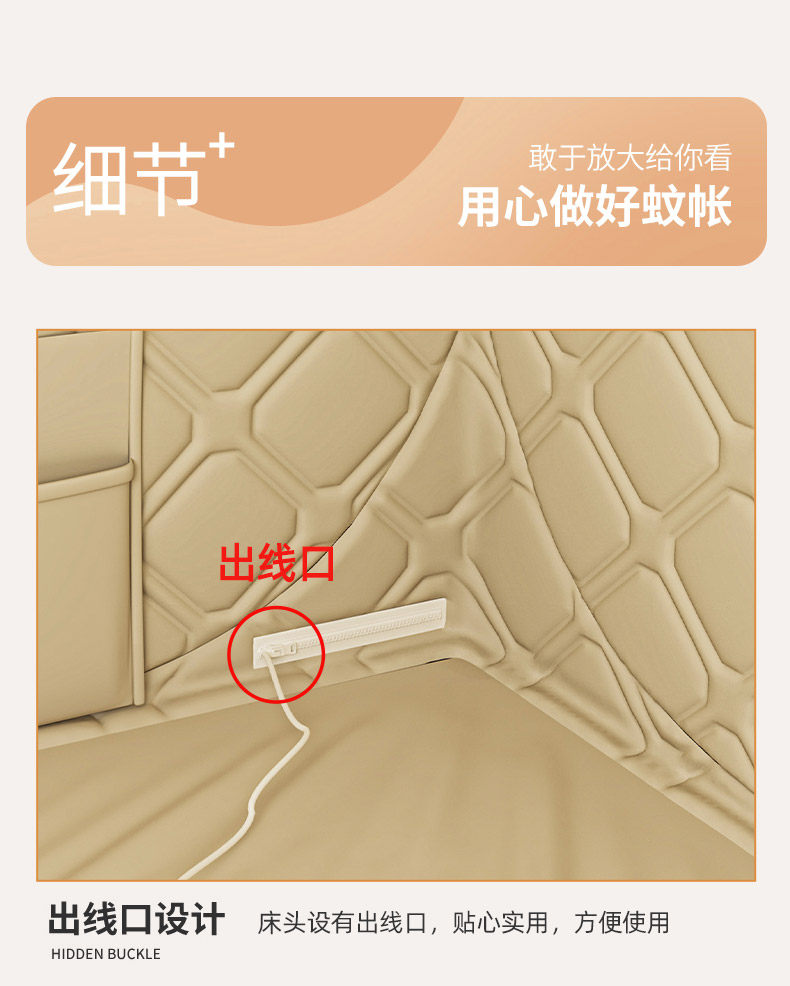 米色夹棉特厚全底【一体式免安装蚊帐】