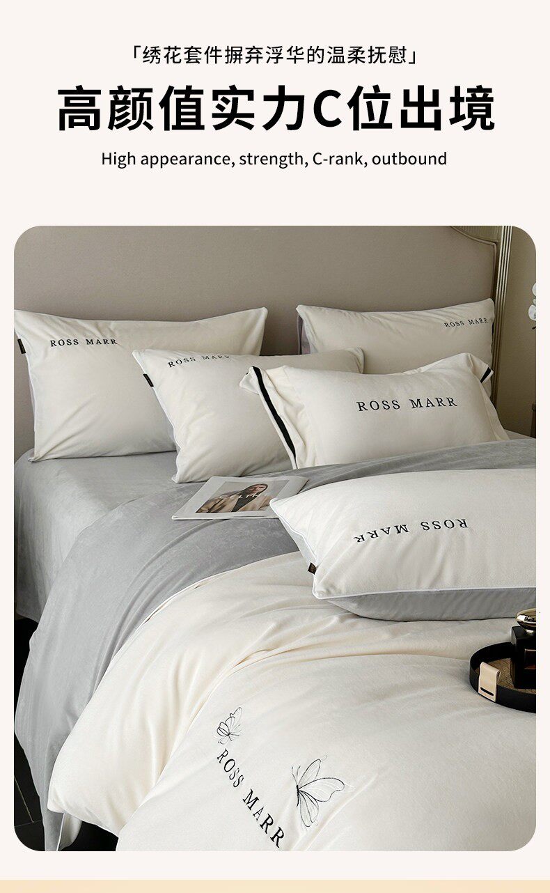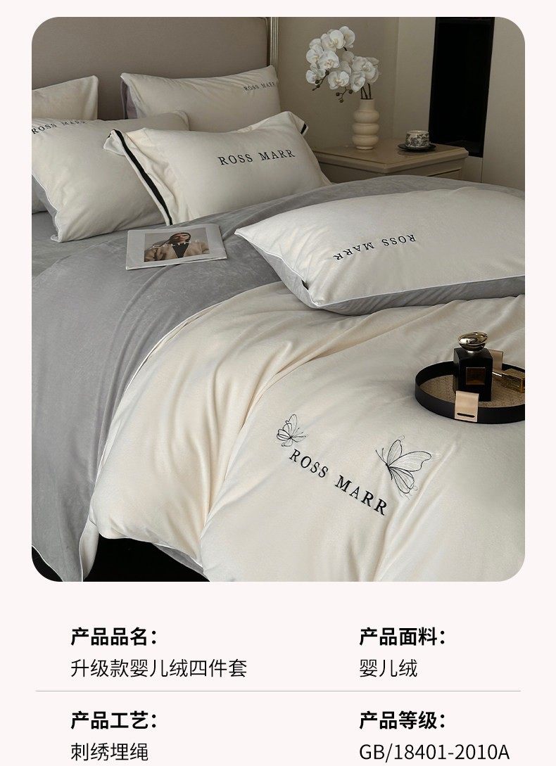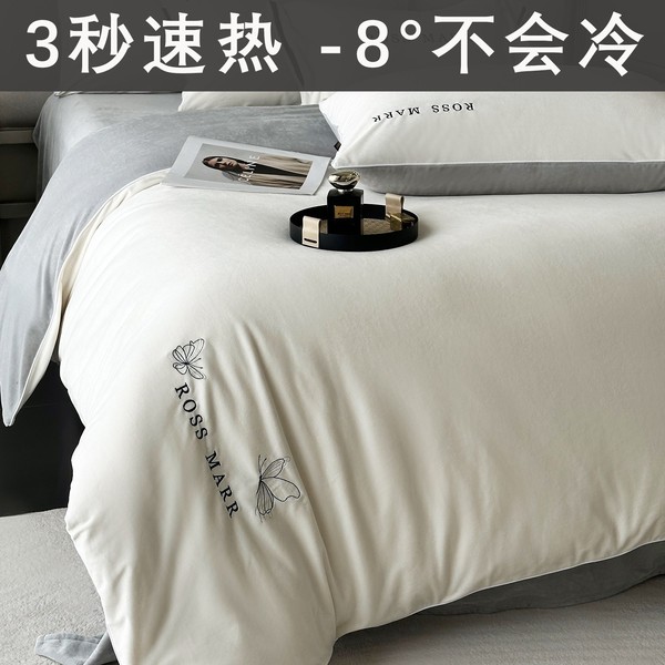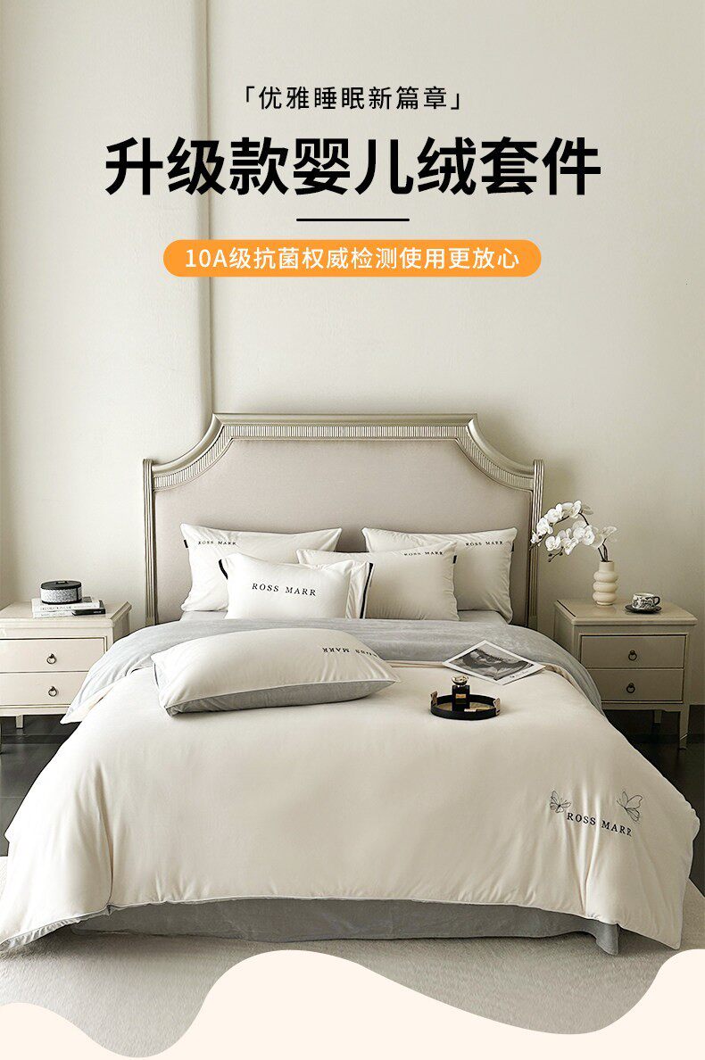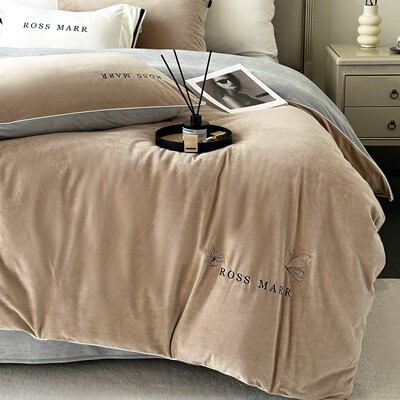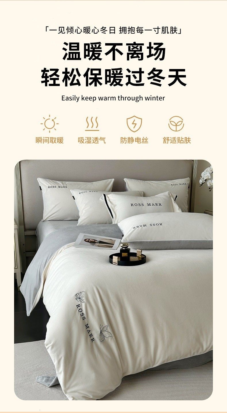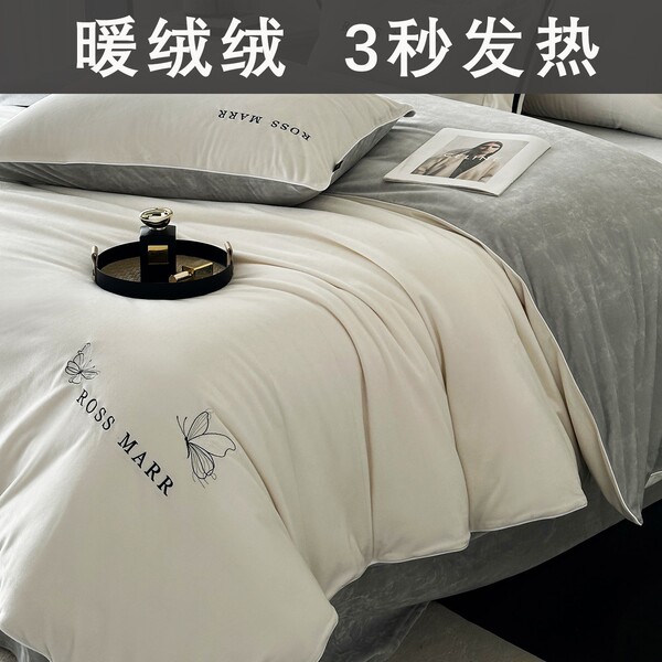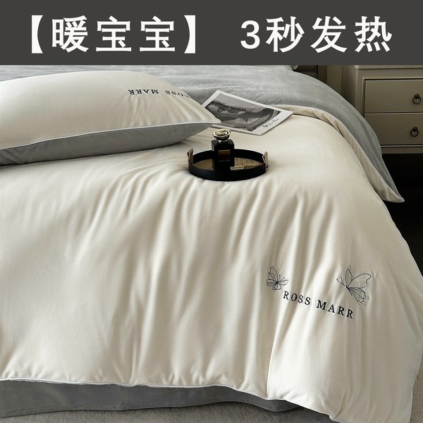 高端婴儿短毛绒保暖四件套冬季新款加厚牛奶绒床单被套床上用a类
