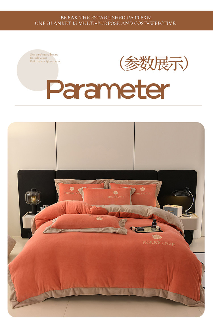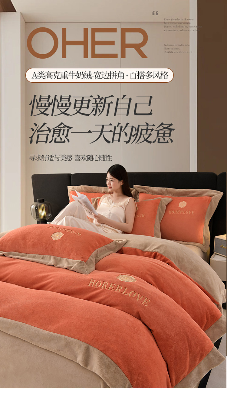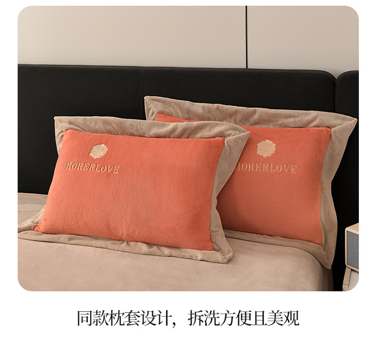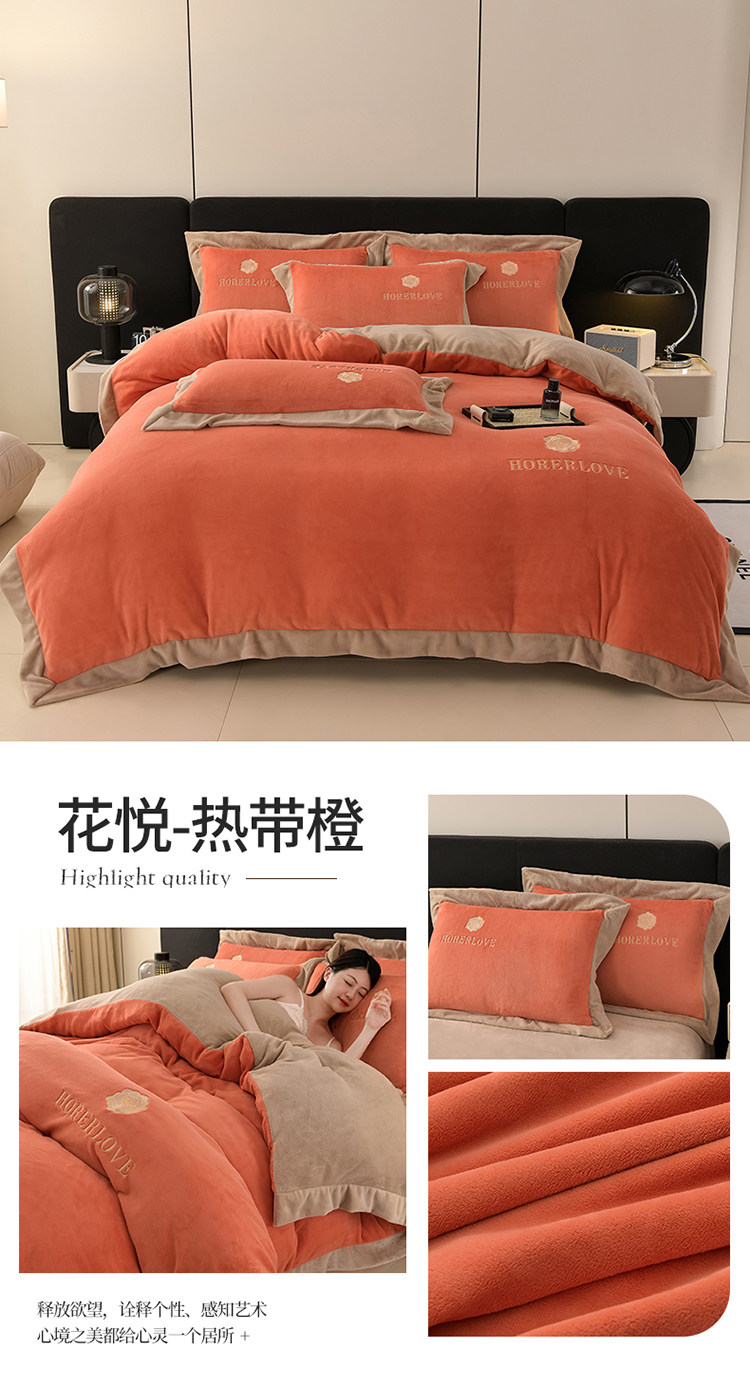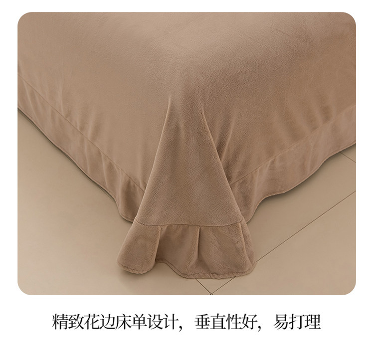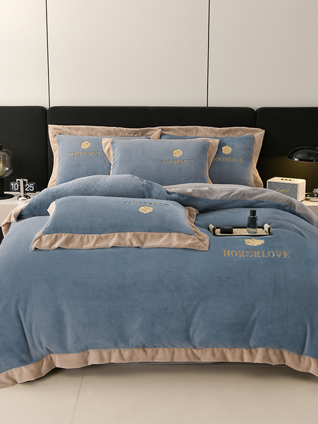 水星家纺秋冬季加厚牛奶绒四件套保暖绒绣花刺绣法莱绒被套床笠款