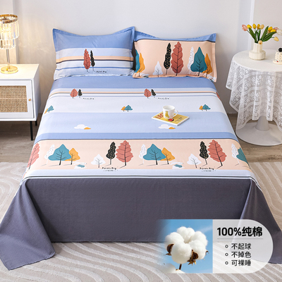 纯棉床单单件学生宿舍单人儿童100全棉双人加厚被单枕套三件套1.8