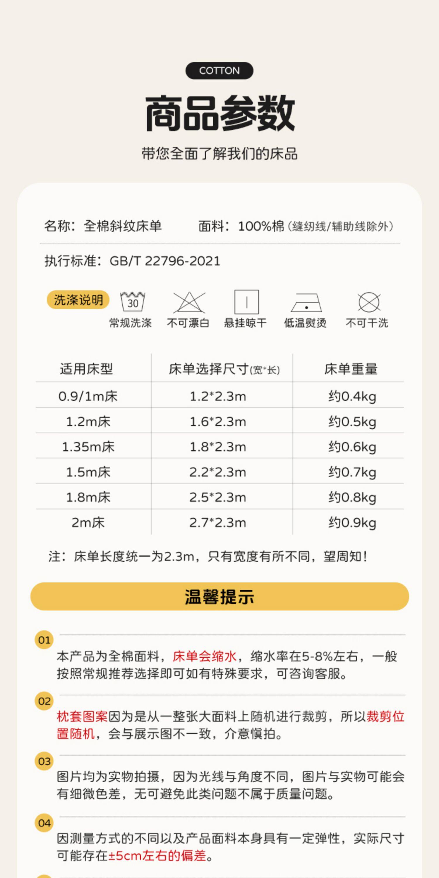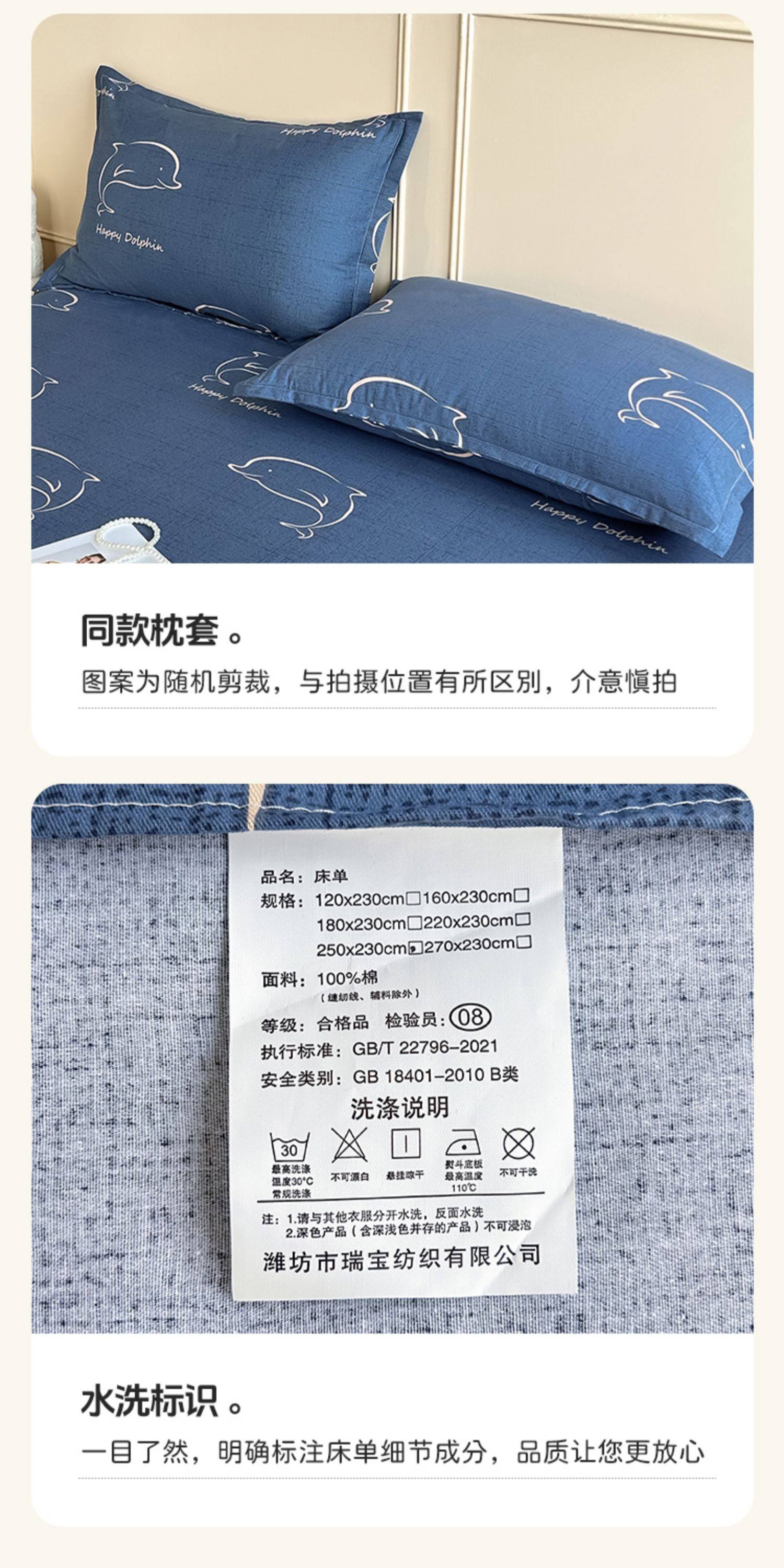 180x230cm单件床单+一对同款枕套(适用于1.3米床)