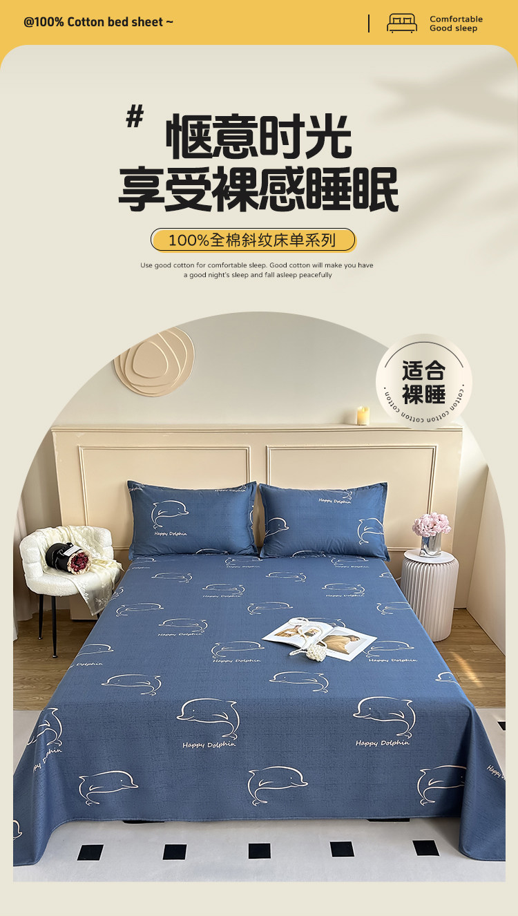 120x230cm单件床单+一只同款枕套(适用于0.9米床)