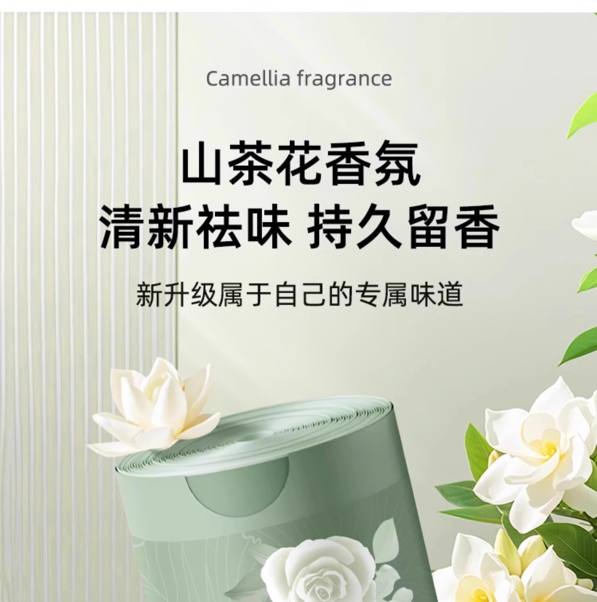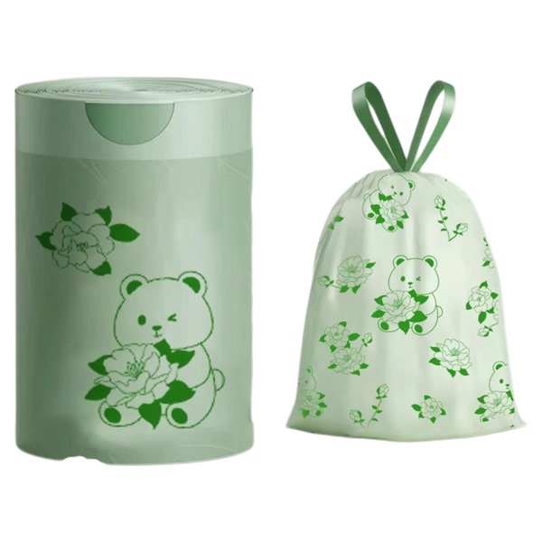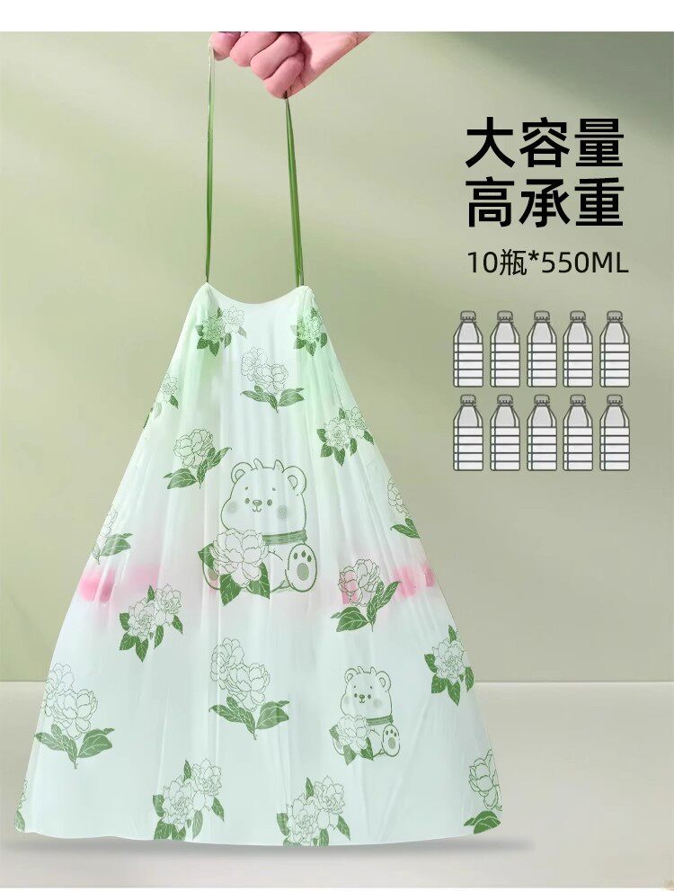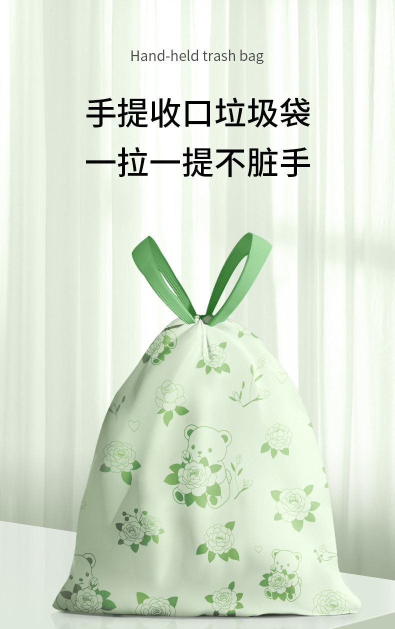 抽绳式双面2.0丝垃圾袋山茶花香氛卡通印花家用加厚清洁袋塑料袋