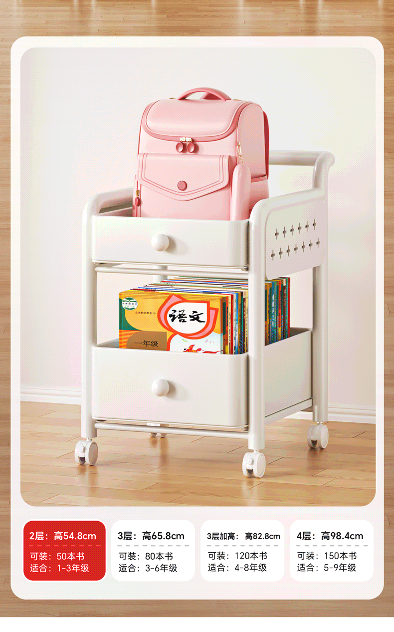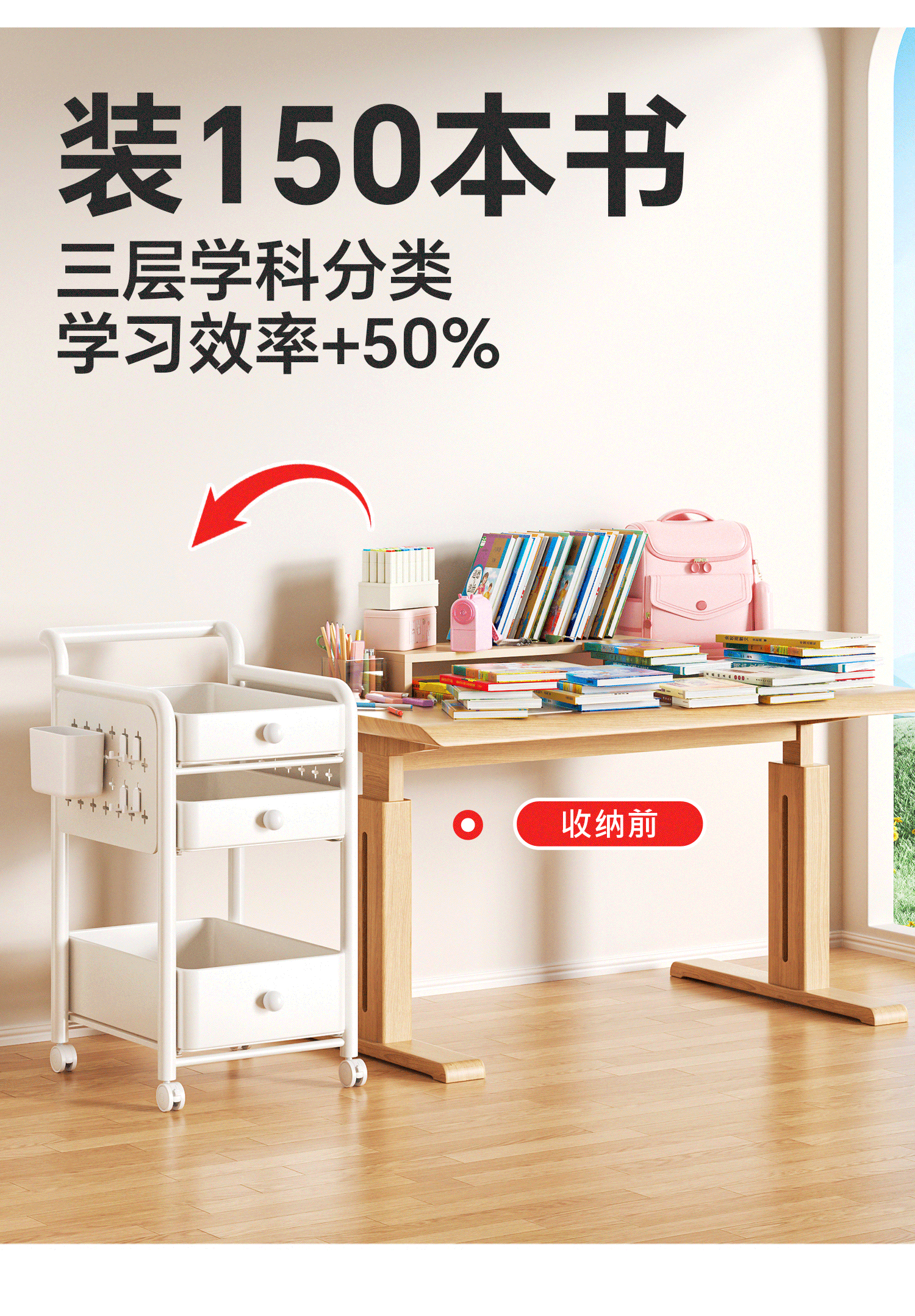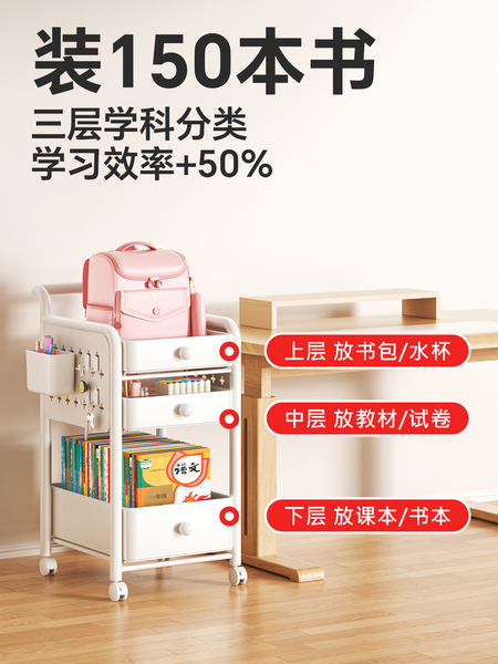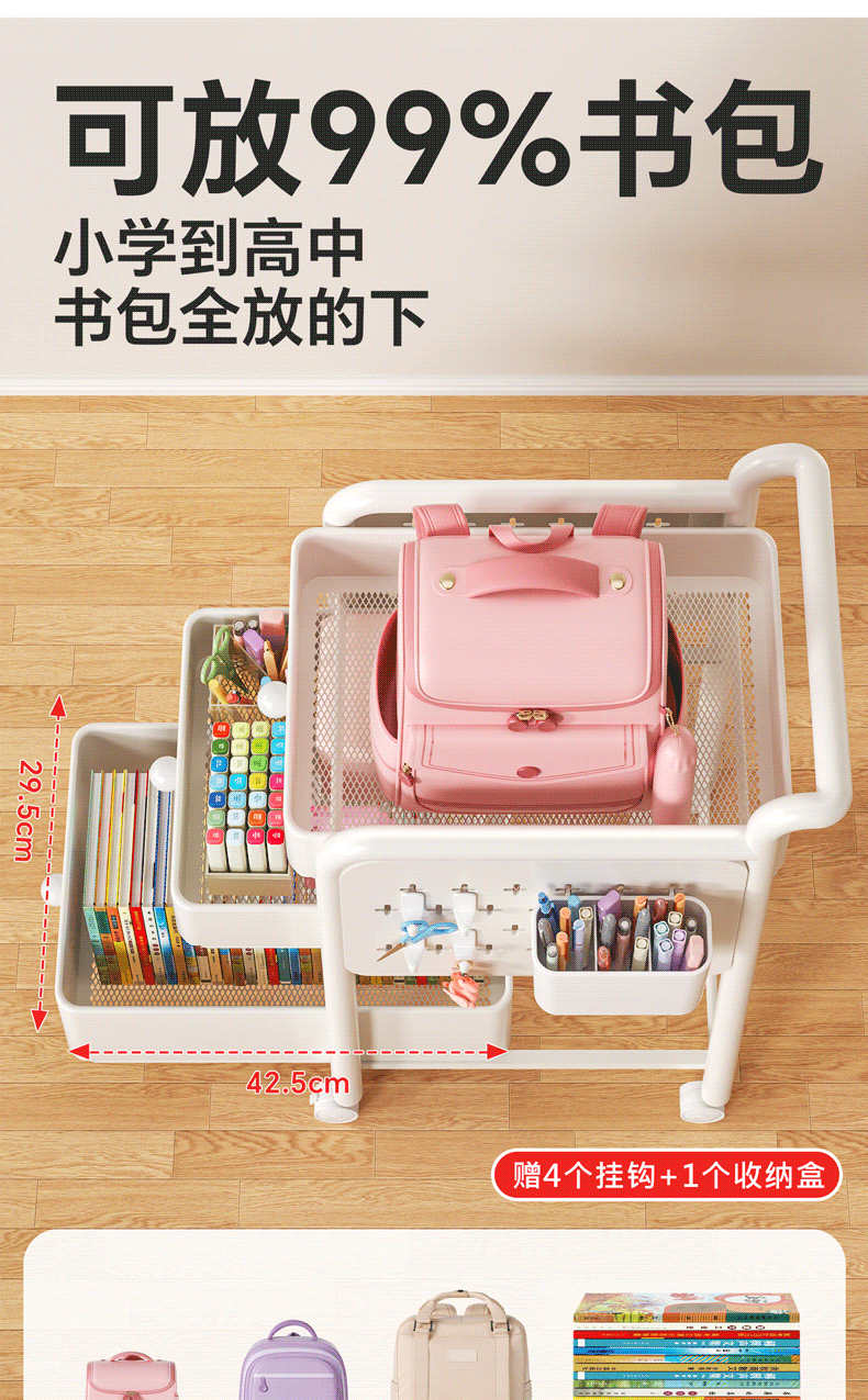 日本书包置物架可移动带轮书架小推车桌面下桌边多层收纳放置神器