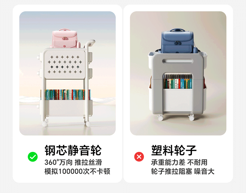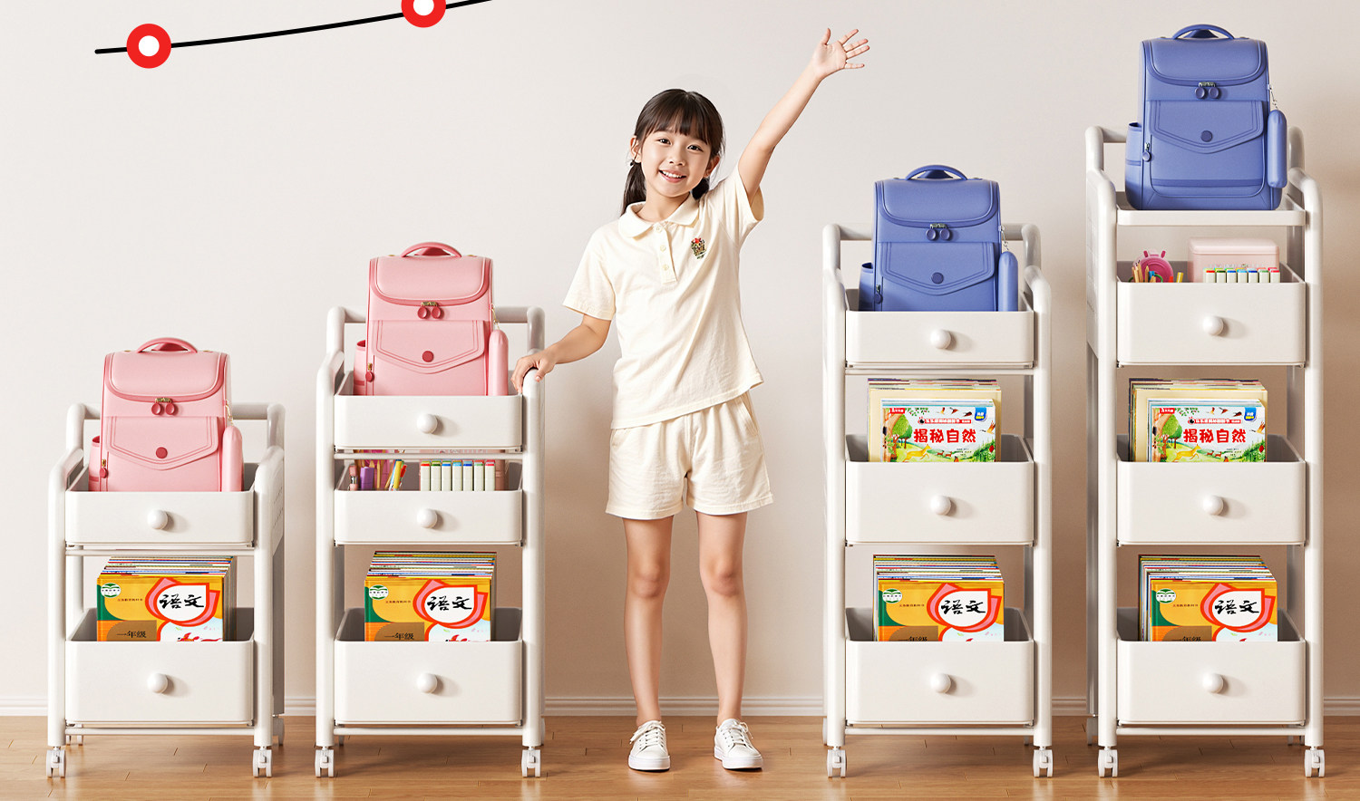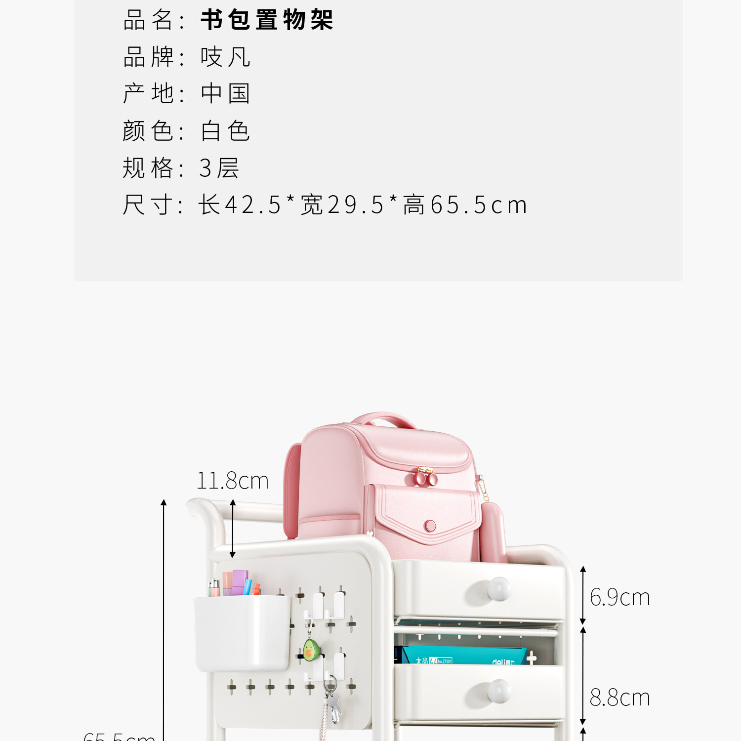 日本书包置物架可移动带轮书架小推车桌面下桌边多层收纳放置神器