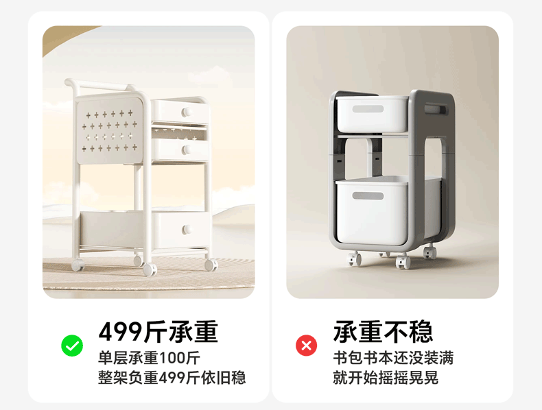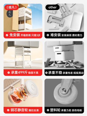 ⭐白色-3层加高【免安装-全身加粗碳钢-承重499斤】钢芯静音轮+赠收纳5件套