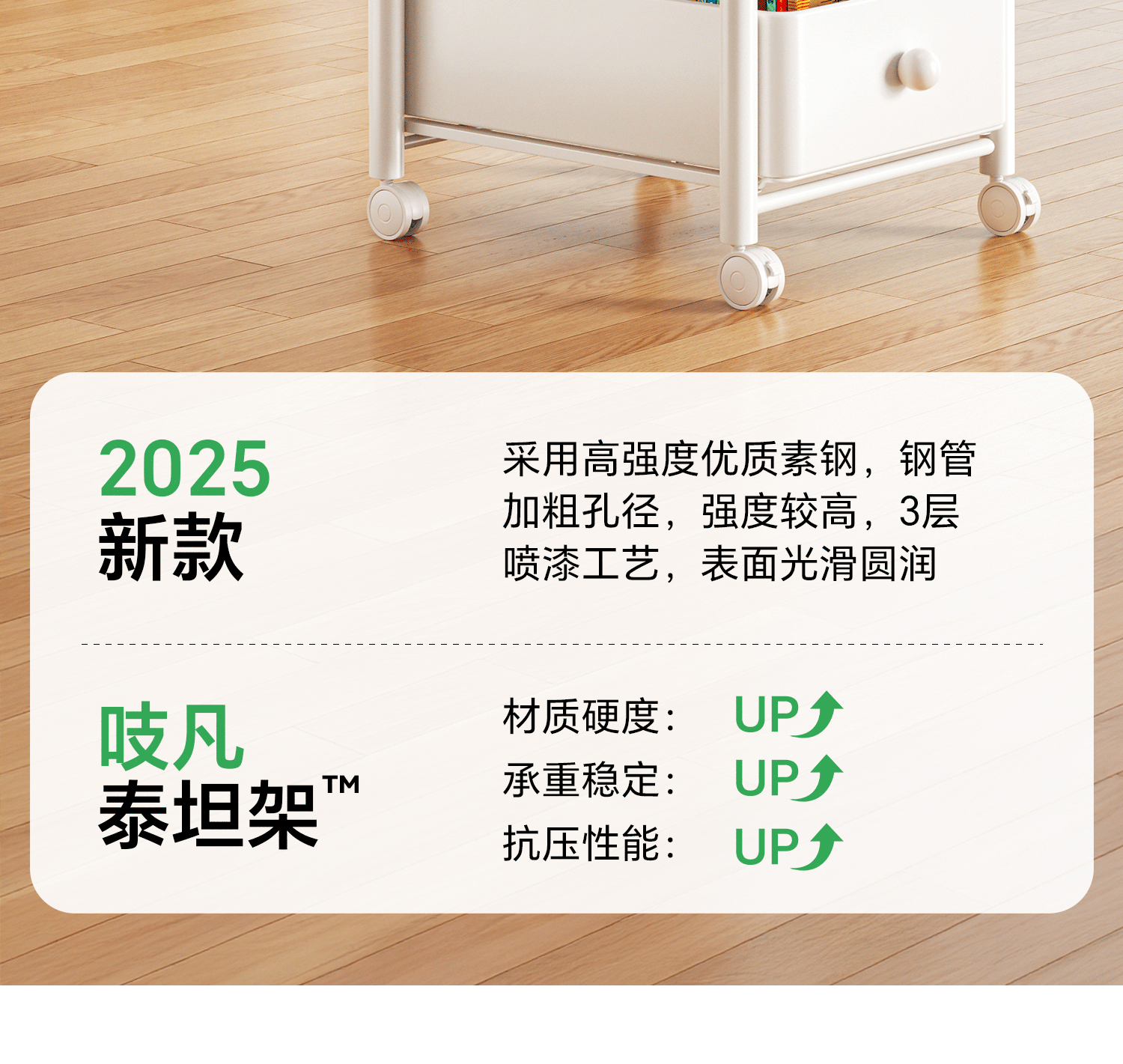 ⭐彩色-3层加高【免安装-全身加粗碳钢-承重499斤】钢芯静音轮+赠收纳5件套