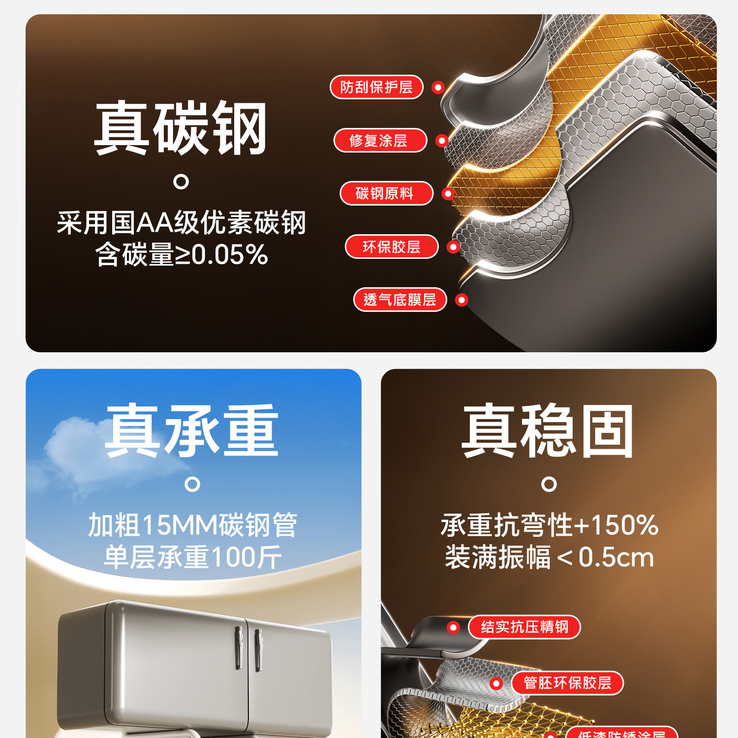 ❤️彩色-3层【免安装-全身加粗碳钢-承重499斤】钢芯静音轮+赠收纳5件套