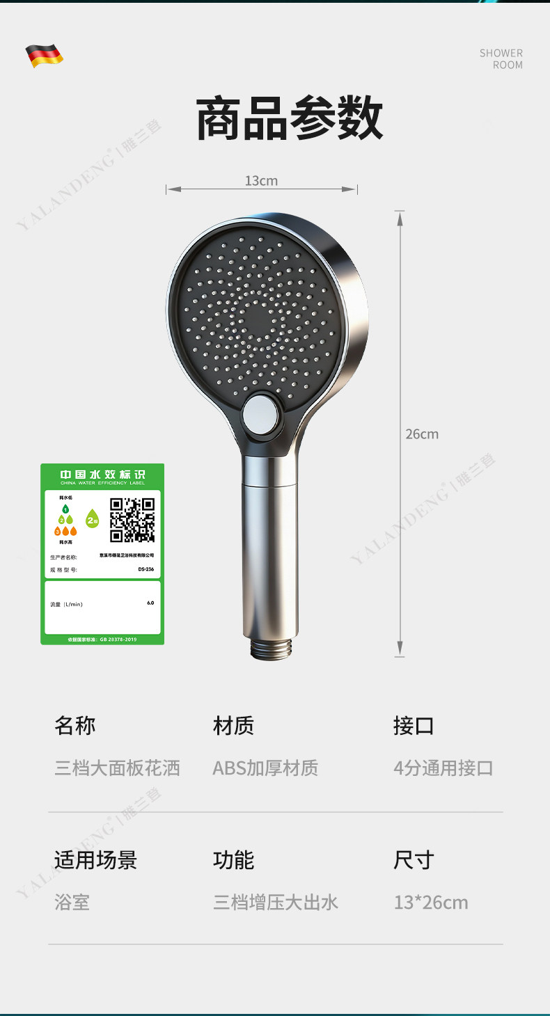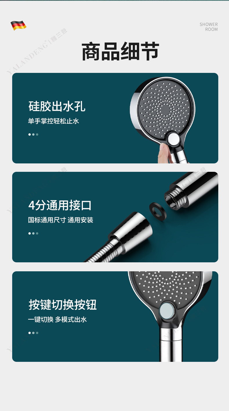 德国增压花洒喷头超强淋浴加压洗澡淋雨浴室水龙头过滤莲蓬头套装