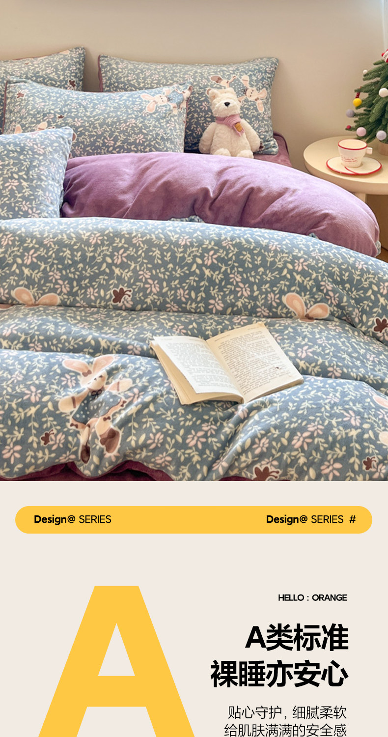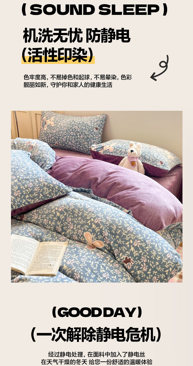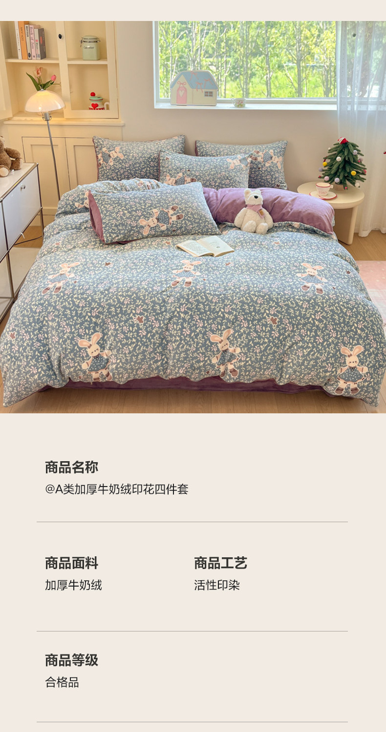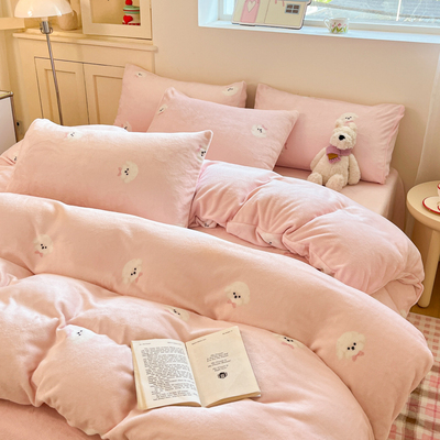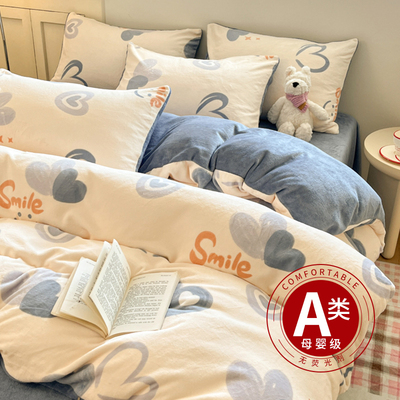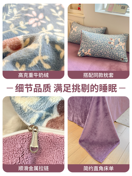 牛奶绒床上四件套2025新款冬季加绒面珊瑚法兰绒床单被套床品床笠