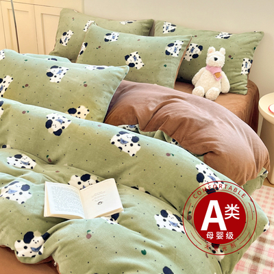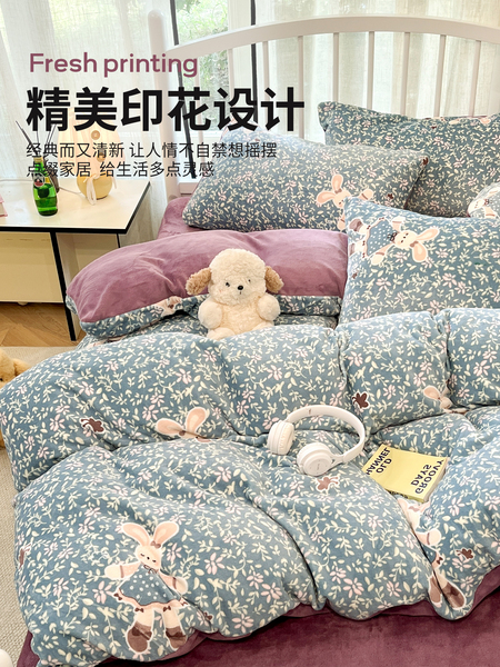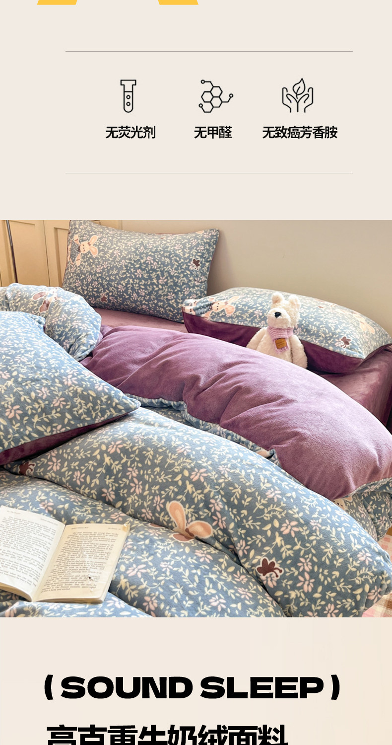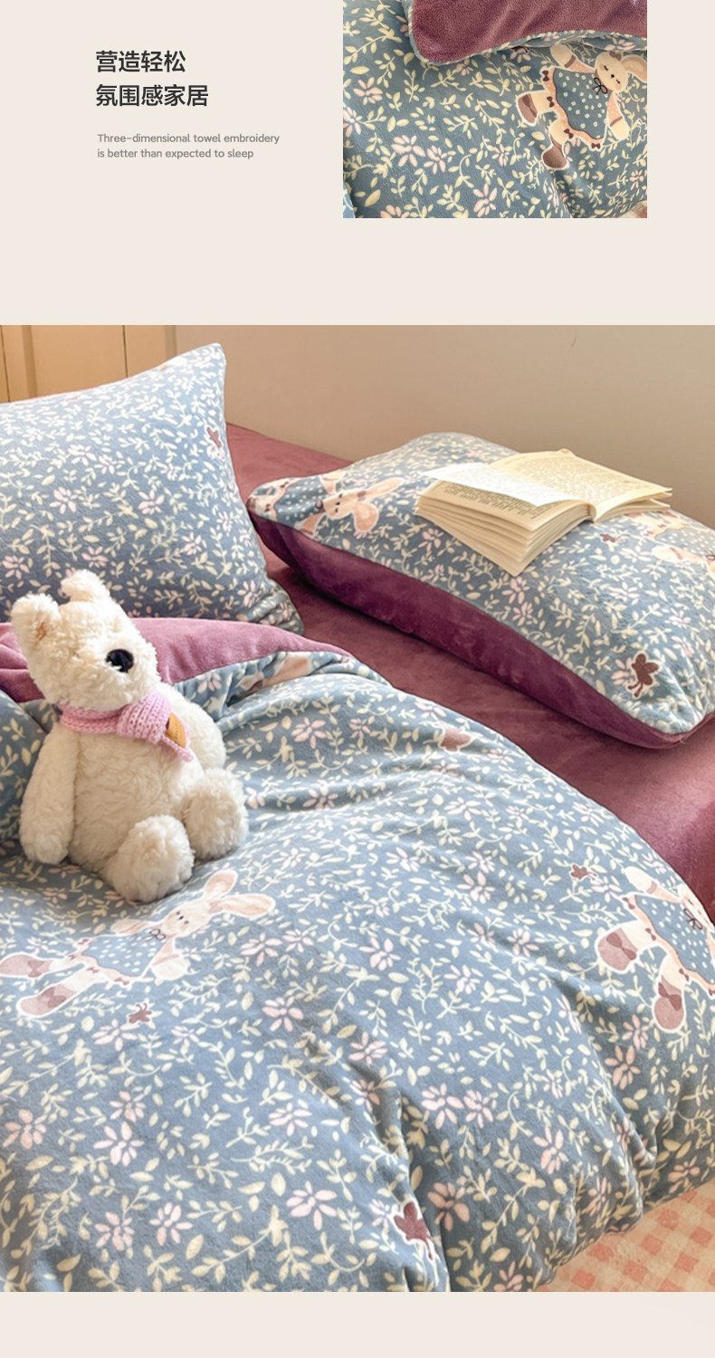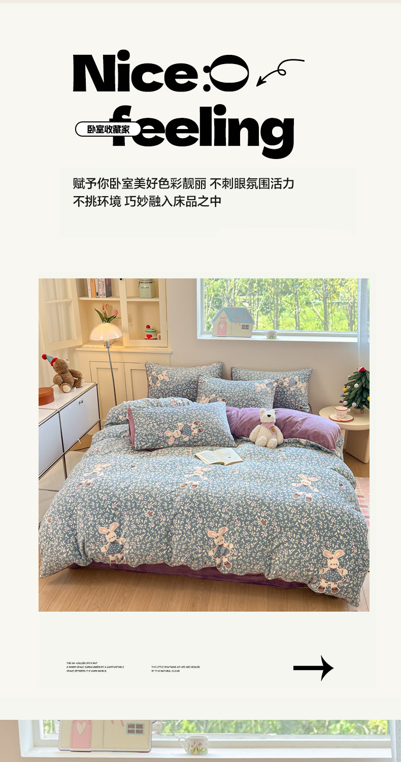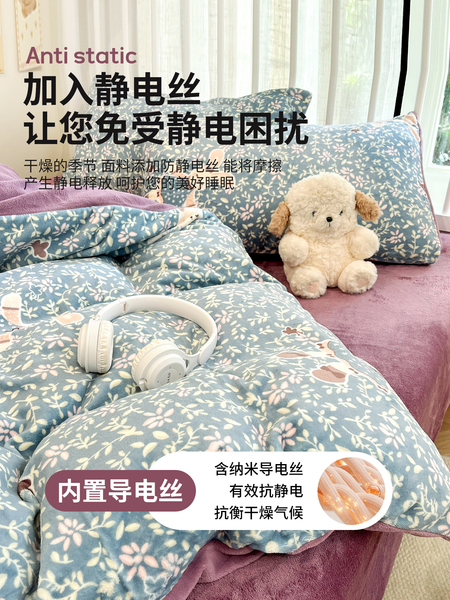 牛奶绒床上四件套2025新款冬季加绒面珊瑚法兰绒床单被套床品床笠