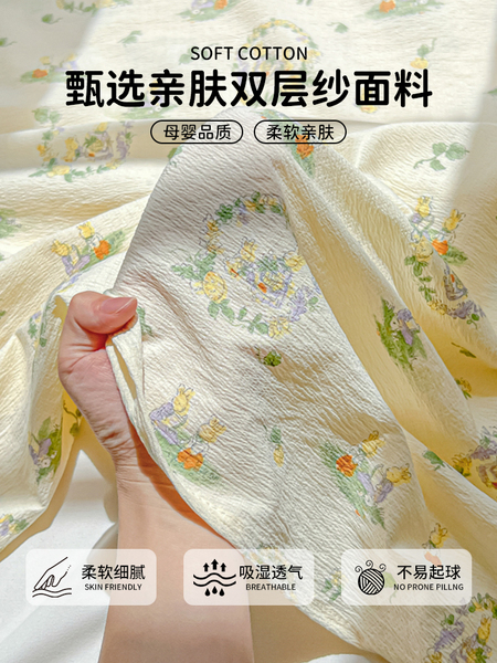升级印花款-森田野园ly【A类云感双层纱 亲肤透气 柔软舒适】