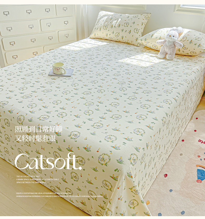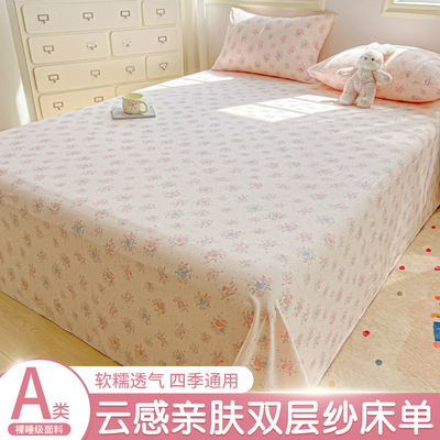 a类印花双层纱床单单件2025新款学生宿舍被单人三件套非纯棉全棉3