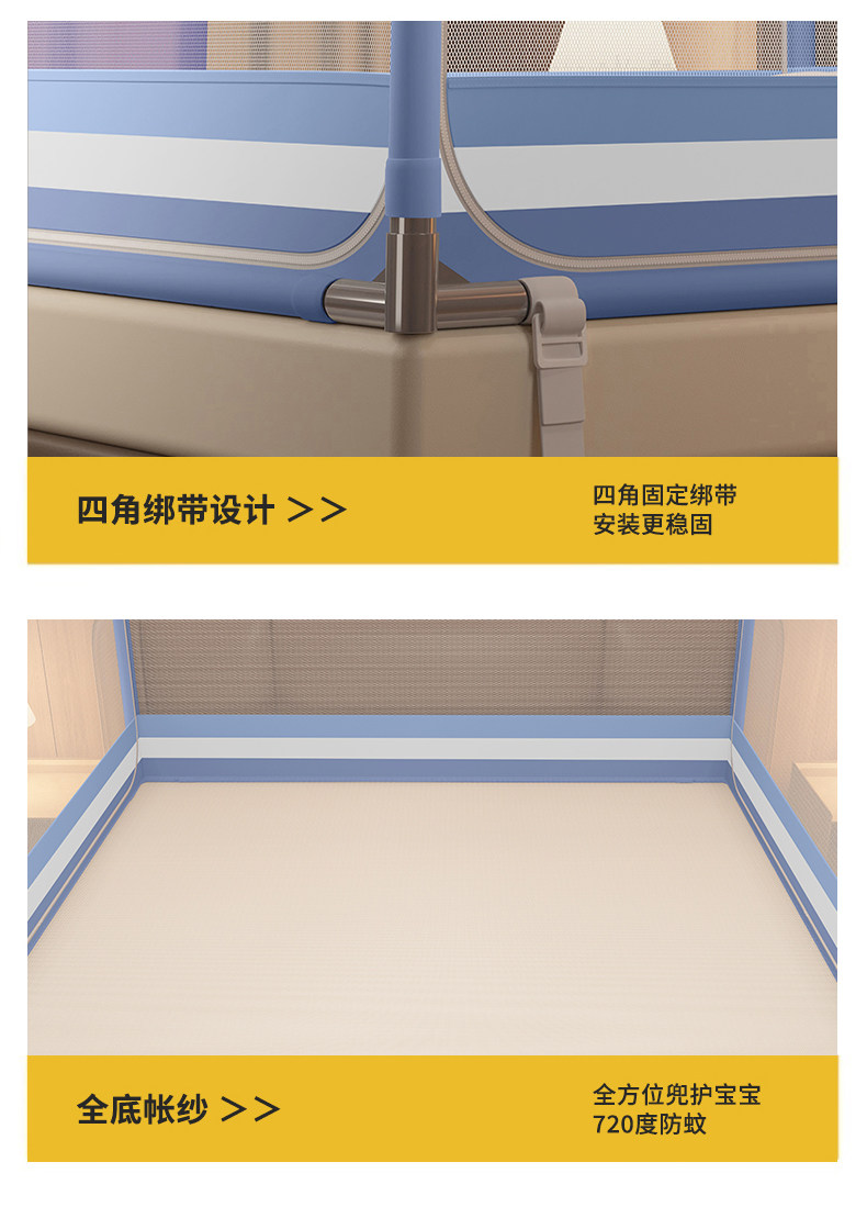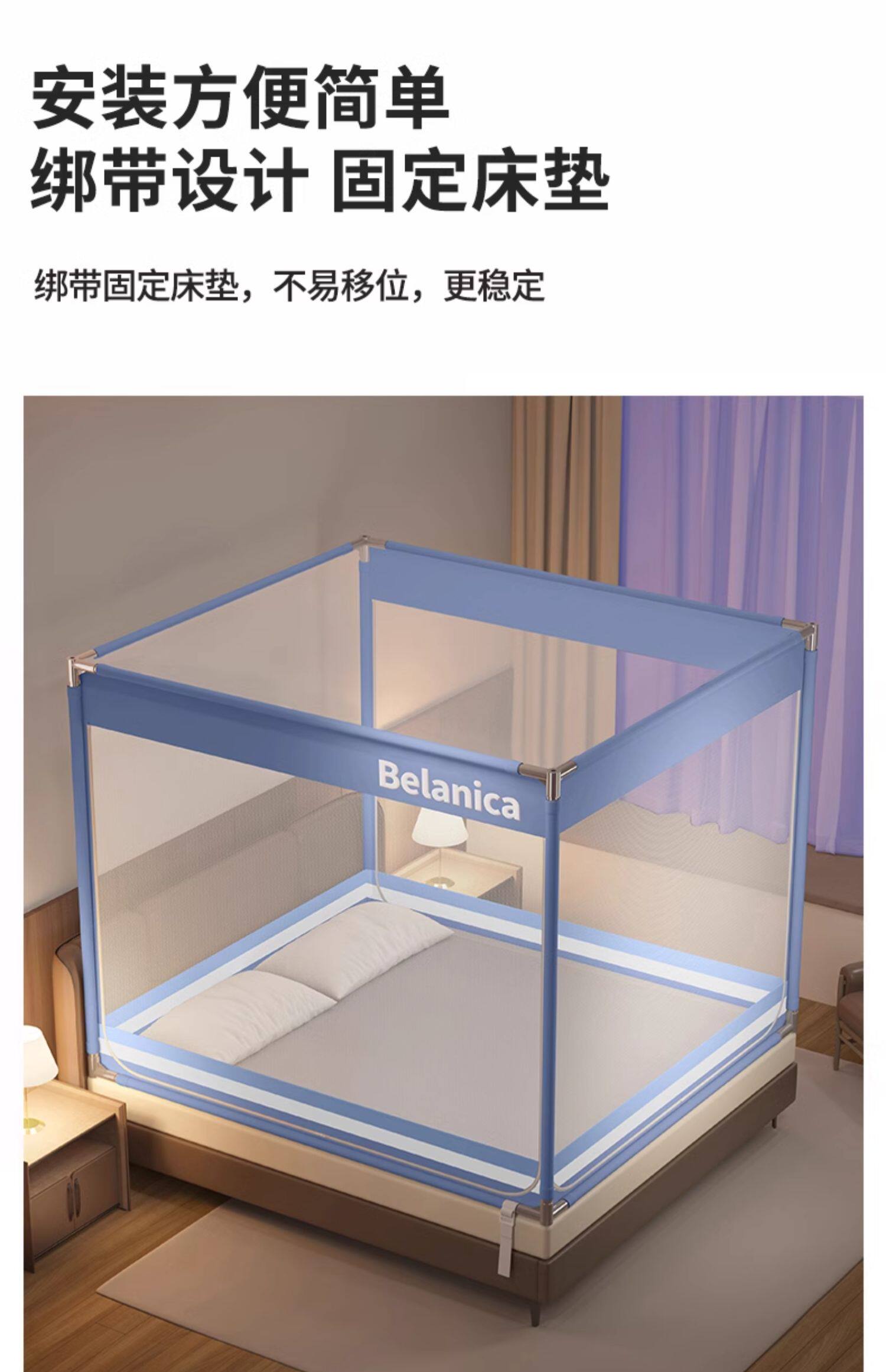 防摔蚊帐防止掉床全罩式家用卧室儿童围栏一体式蒙古包全底免拼接