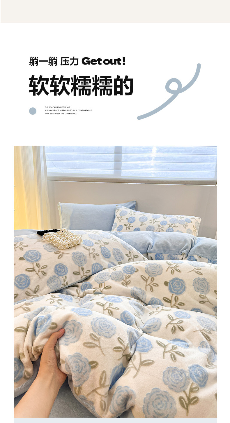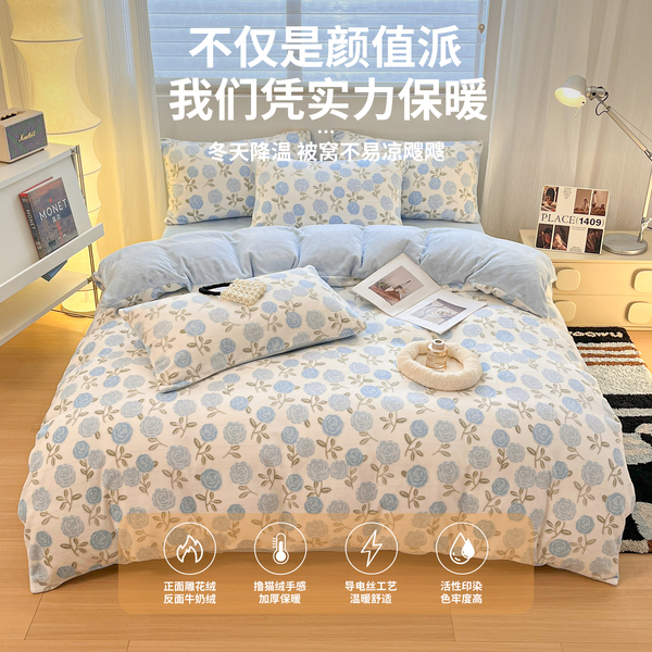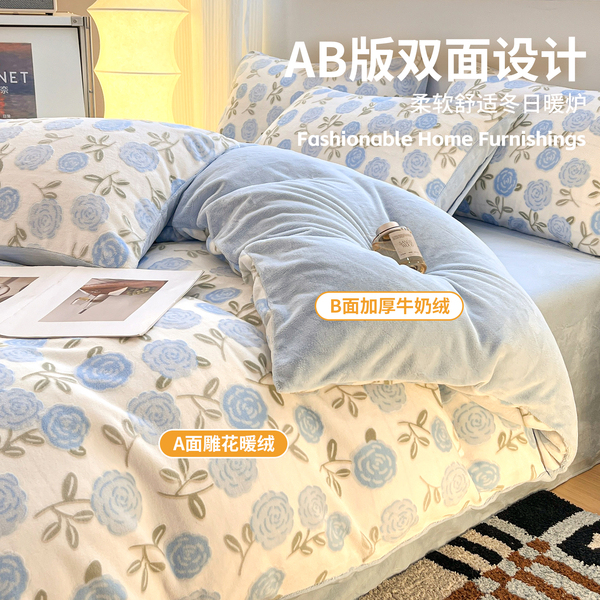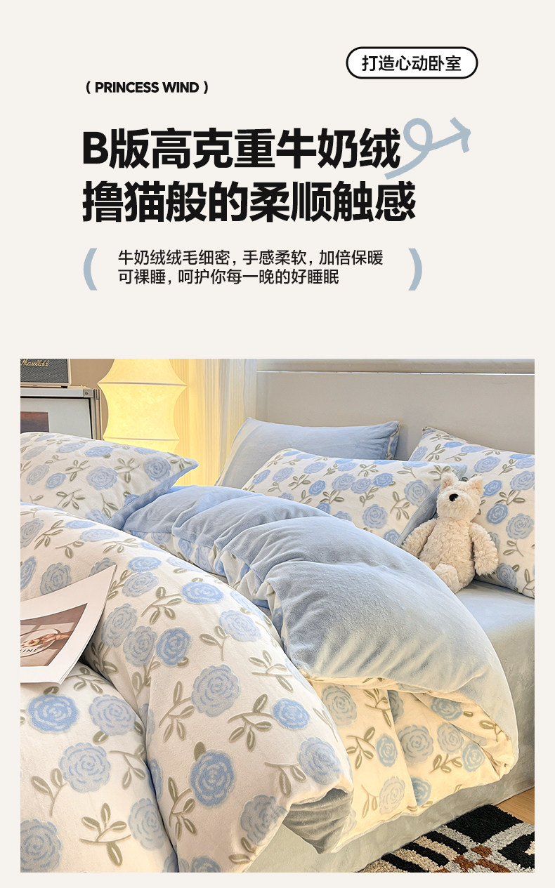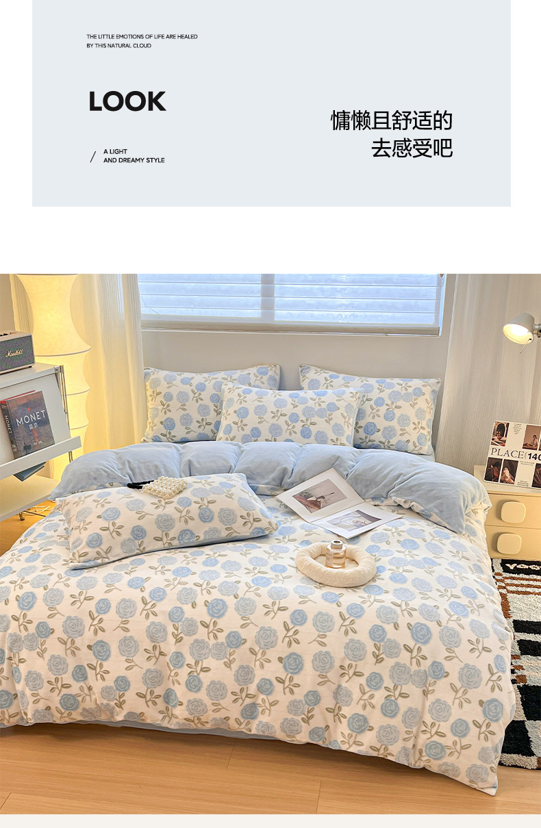 2025新款牛奶绒床上四件套床笠冬季珊瑚绒床单被套三件套床品被套