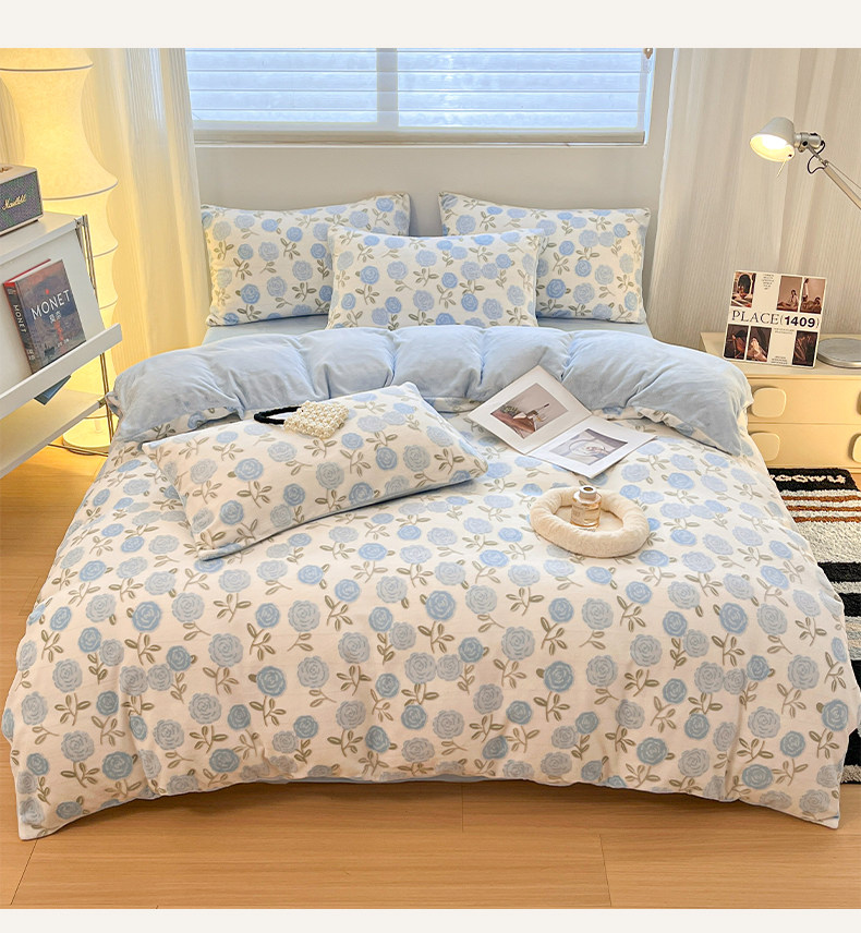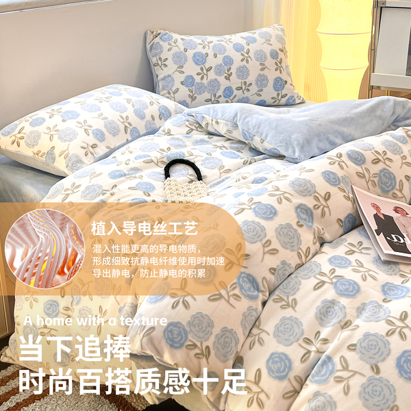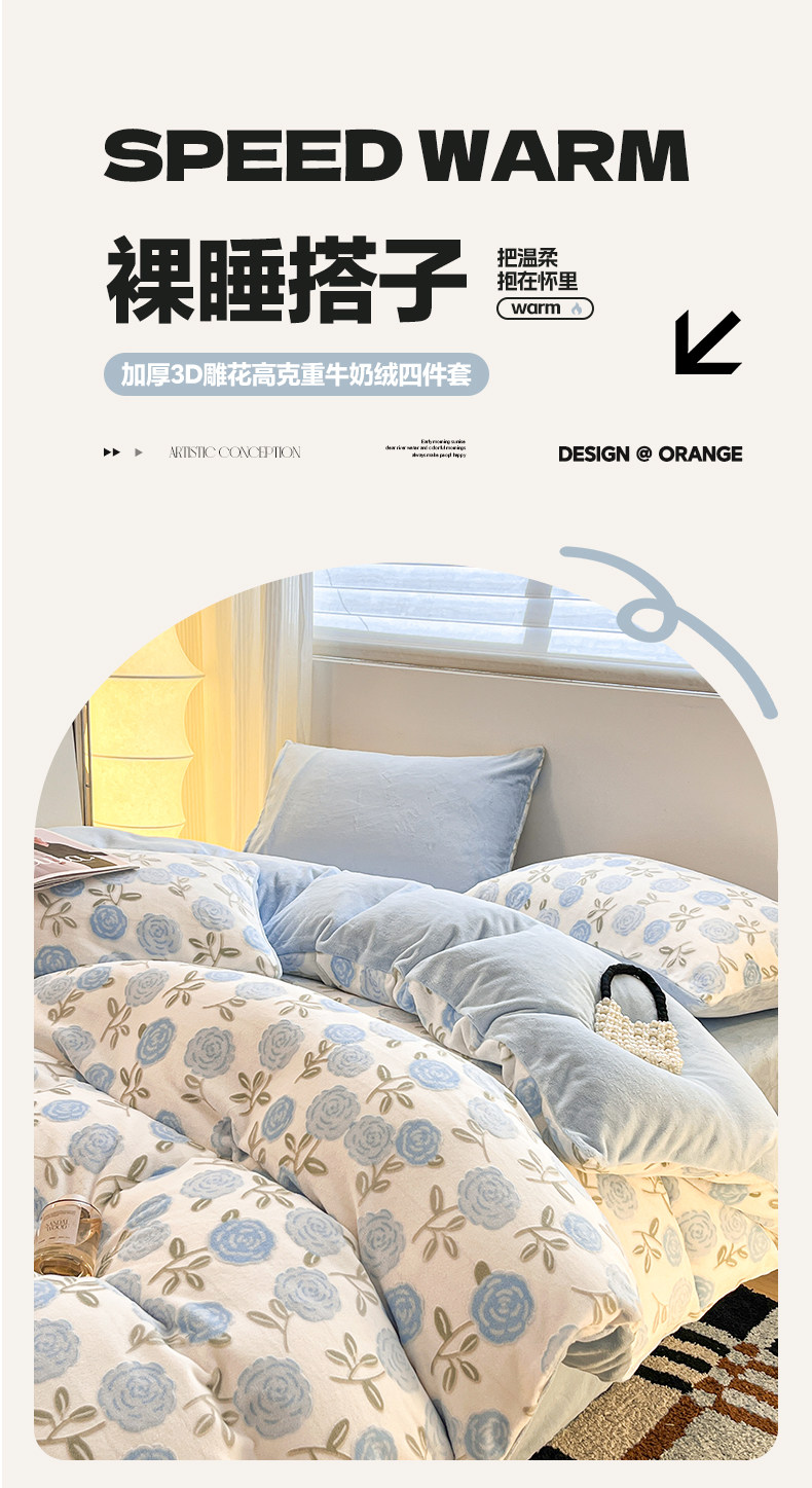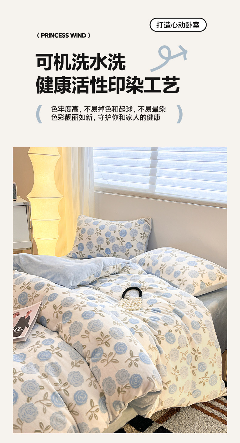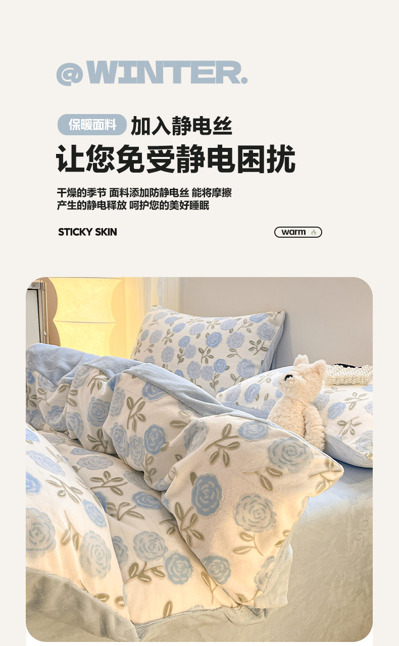 2025新款牛奶绒床上四件套床笠冬季珊瑚绒床单被套三件套床品被套