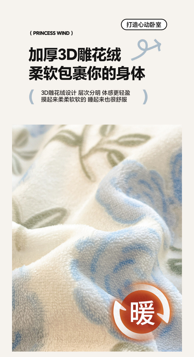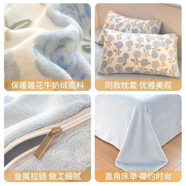 繁花-天蓝【加厚加密牛奶绒✅抗静电✅不易掉毛✅品牌质检✅】