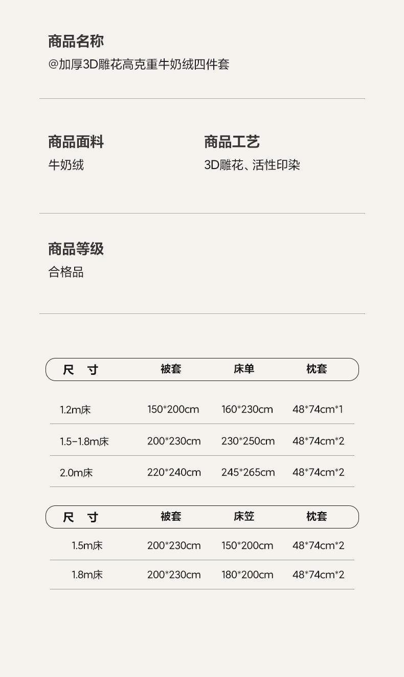 1.5m床【牛奶绒床单款四件套】-适合200x230cm被芯