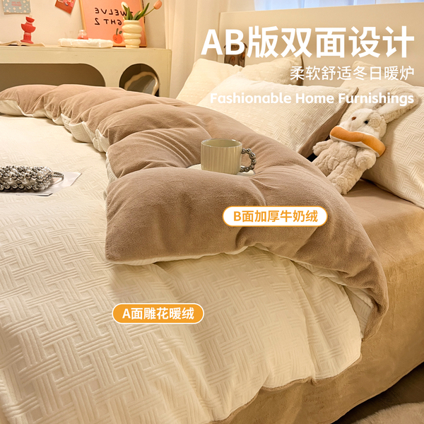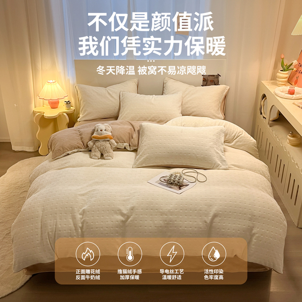 加厚牛奶绒床上四件套2025新款冬季珊瑚绒床单被套三件套床品被套