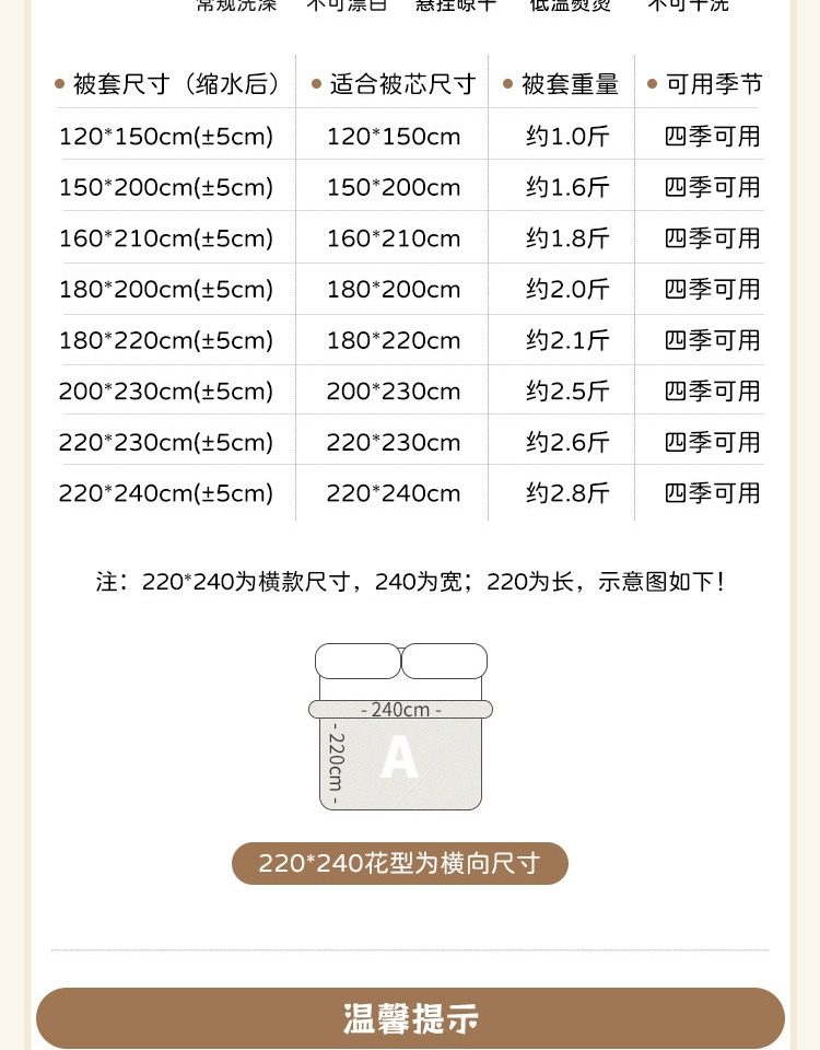 220x240cm单件被套【适用于2.4m被子】