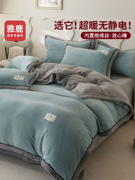 雅鹿冬季牛奶绒被套单件加厚加绒双面珊瑚法兰绒单人被罩150x200