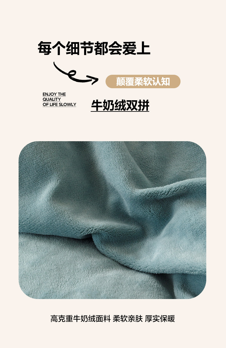 米白+浅水绿【高克重牛奶绒 不易掉毛抗静电】