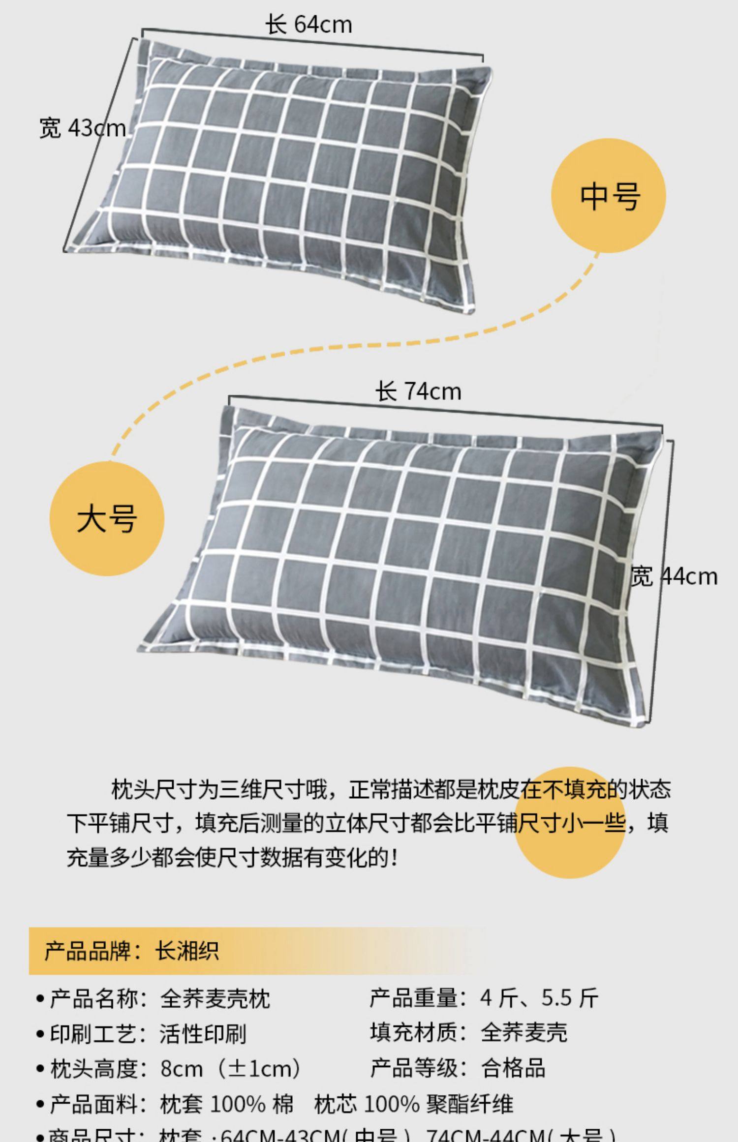 快乐空间【大号】双层内胆+纯棉枕套+90级荞麦壳