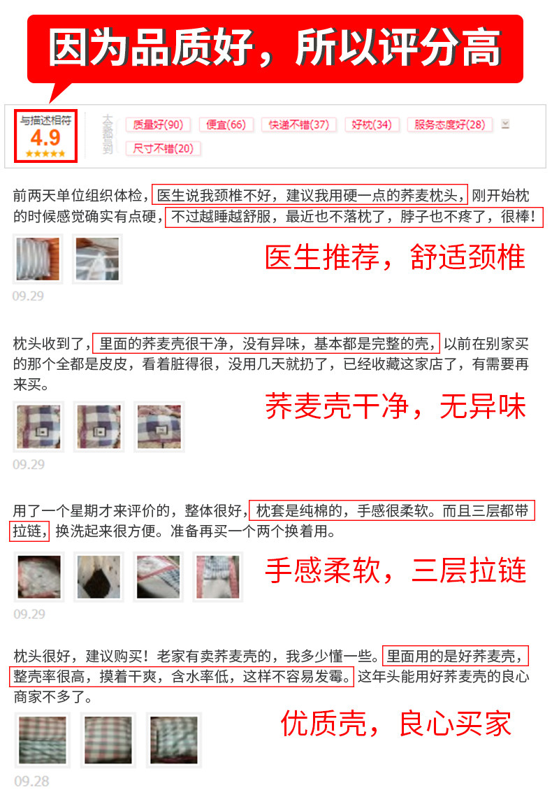 幸福时刻【大号】双层内胆+纯棉枕套+90级荞麦壳