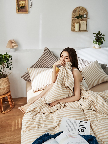 裸睡a类纯棉针织天竺棉床上三四件套 全棉超柔软简约条纹被套床单