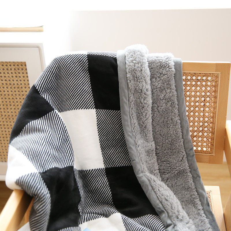 出口北欧双层毛毯加厚保暖冬季羊羔绒珊瑚绒毯子沙发小号午睡毯