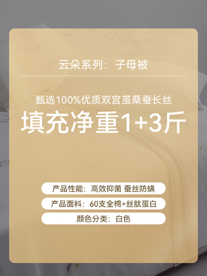 【1+3斤净重】双宫茧桑蚕长丝 子母被-云朵