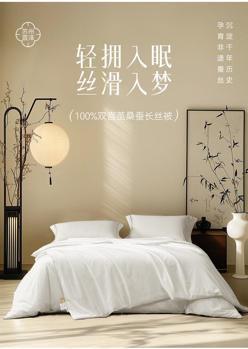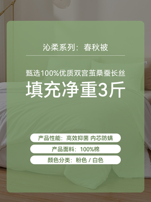 太湖雪100%被子蚕丝被双宫茧桑蚕长丝被子被芯春秋子母冬被沁柔