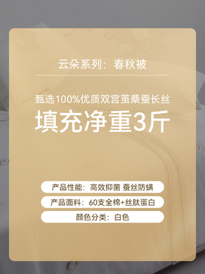 【3斤净重】双宫茧桑蚕长丝 春秋被-云朵