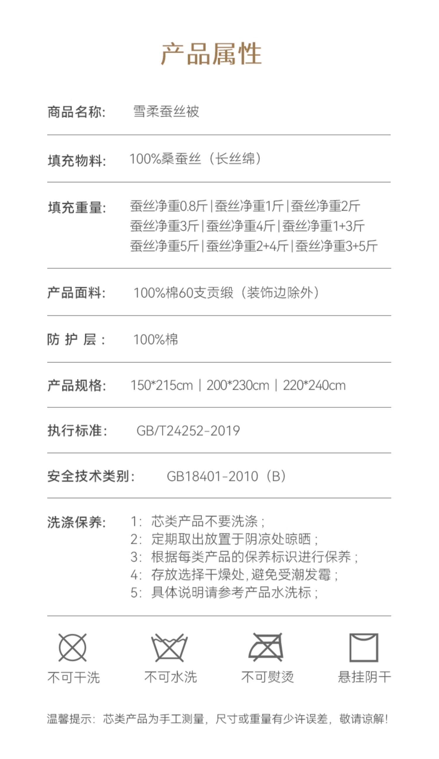 【1.5斤净重】双宫茧桑蚕长丝 夏被-沁柔
