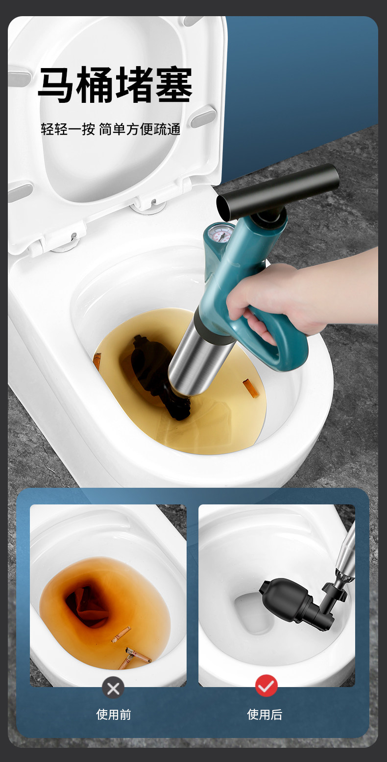 虎行马桶疏通器一炮通下水道神器厕所厨房强力捅管道堵塞专用工具