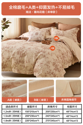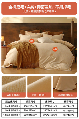 水星家纺全棉磨毛四件套纯棉抗菌加厚保暖床上用品秋冬天床单被套