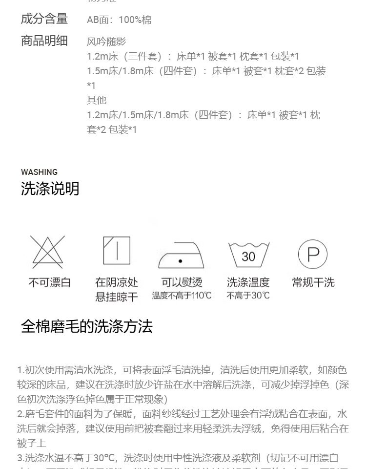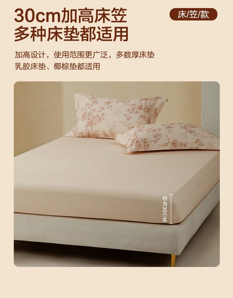 (床笠式)【全棉磨毛+抑菌呵护+B类】叶朦胧